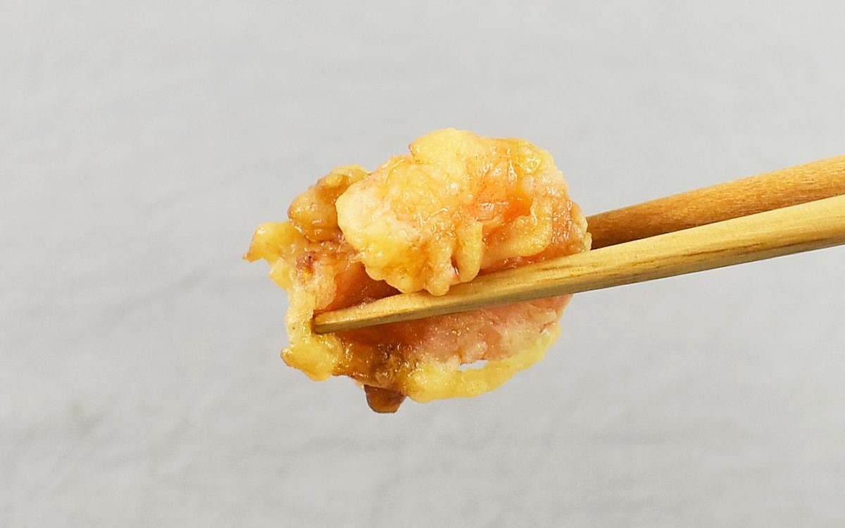 かき揚げに関する知識が増えたところで、いざ実食! パッケージを開けると、下のご飯が隠れるほど大きな“かき揚げ”がお目見えしました。付属のタレをかけてから一口いただいた瞬間、まず感じたのは“だしの効いた醤油味”。タレにかつおぶしや昆布、しいたけのエキスがたっぷり入っているおかげで、深みのある上品な味を感じることができます。