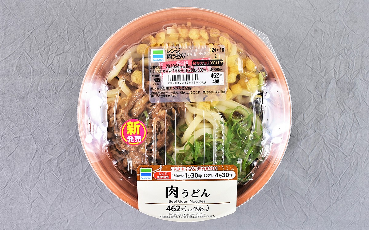 全国各地、どの季節でも食べることができる“うどん”。昨今では様々な種類のうどんをコンビニで気軽に味わえますよね。今回ご紹介する「レンジ肉うどん」(498円/税込)は、今年10月に販売を開始したファミリーマートの新商品。一見シンプルな見た目の肉うどんですが、果たしてそのお味は……?