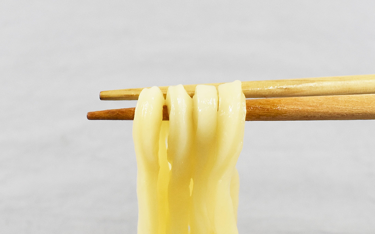 それでは実際に試食して仕上がりを確かめていきましょう。まずうどんを一口食べて感じたのは、もちもちの食感とコシの強さ。1本1本の存在感がはっきりしており、食べごたえある麺がとっても魅力的です。おまけに太めの麺はつゆともよく絡み、口の中に優しい風味が広がるのもGOOD。出汁の効いたつゆと、弾力のあるうどんをしっかり堪能できます。