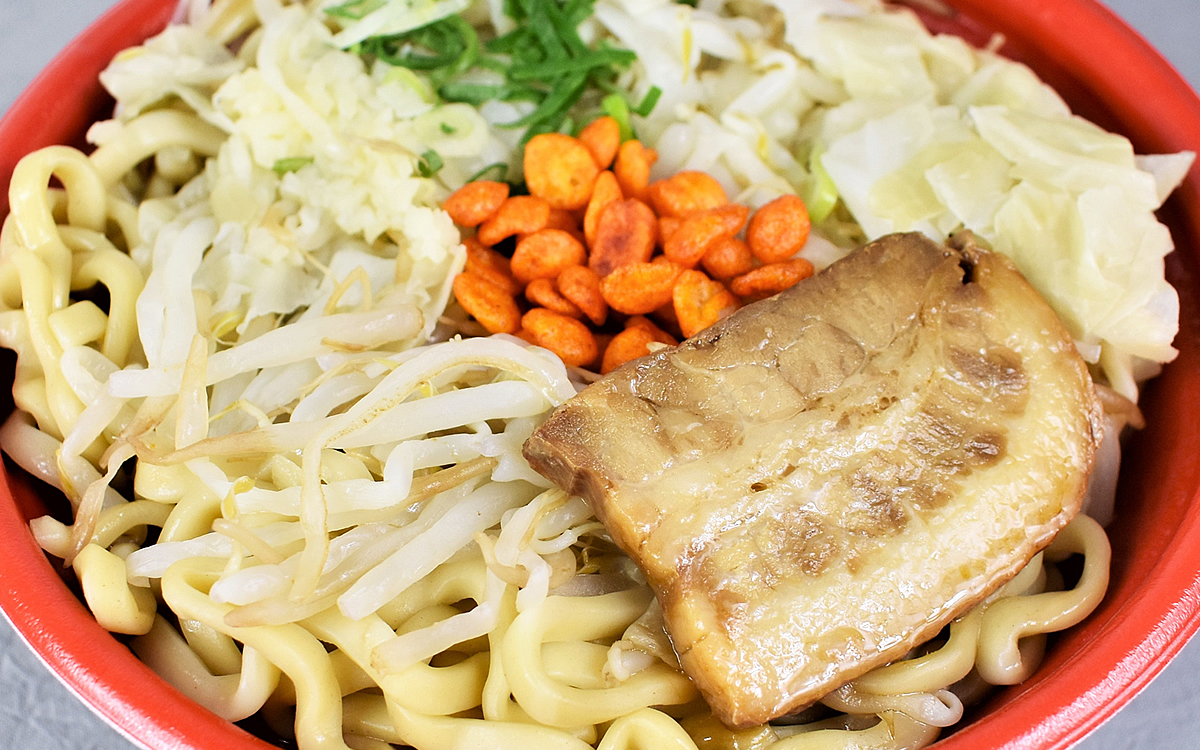 器がパンパンになるほど麺も具材も盛り沢山な同商品。総重量はなんと約700g、カロリーも1000kcalオーバーとまさに“二郎インスパイア系”の名に恥じないボリューミーさです。ずっしりとした重さに少々背徳感を感じるところですが……。果たして味はいかがなものなのでしょうか?