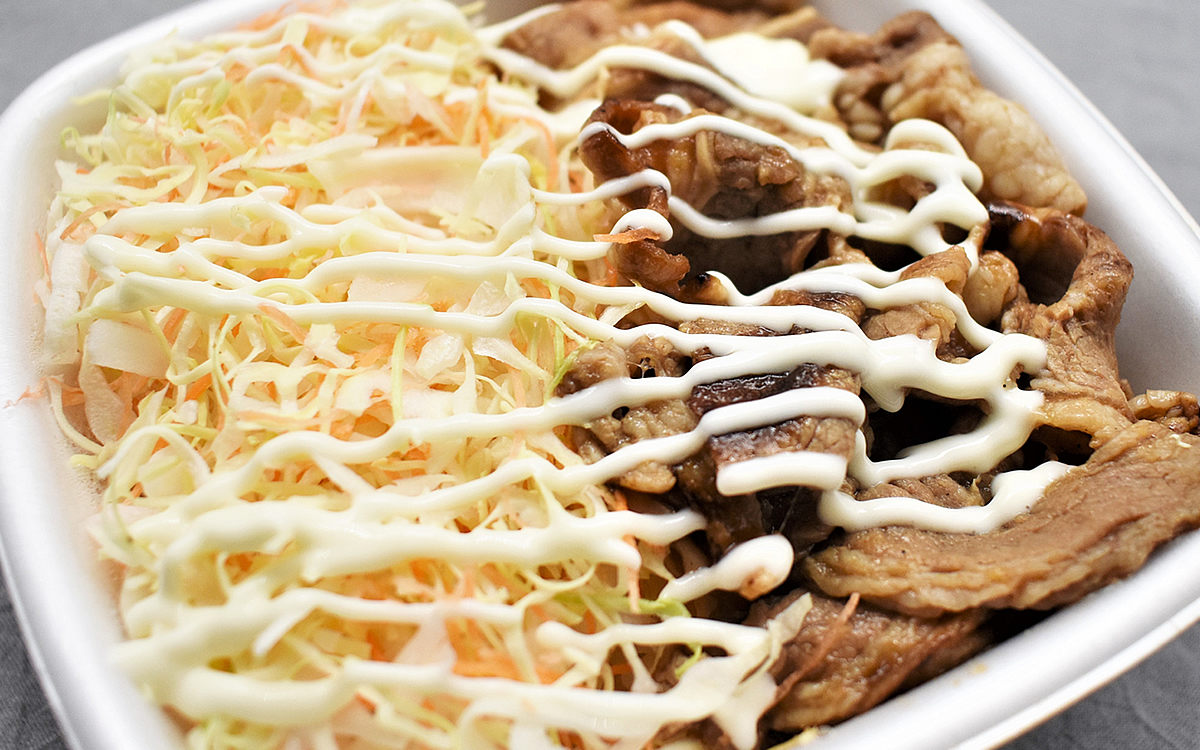 期待に胸を膨らませながら商品のフタを開けると、さっそく濃厚な香りがふんわり。並盛とはいえ牛カルビと野菜の千切りもボリュームたっぷりで、下にあるはずのご飯の姿が全く見えません。商品に付属しているマヨネーズを全体にかけ、特製タレとのハーモニーを楽しんでみましょう。
