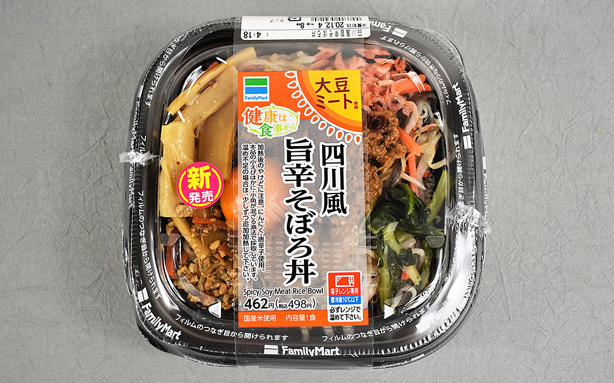 辛いもの好きを唸らせる、中国四大料理の1つ“四川料理”。ピリっとした刺激が発汗を促すので、寒い日につい食べたくなりますよね。そこで今回は、ファミリーマートの「四川風旨辛そぼろ丼」(498円/税込)をピックアップ。そぼろには今話題の“大豆ミート”が使われていますが、果たしてそのお味と食感は……?