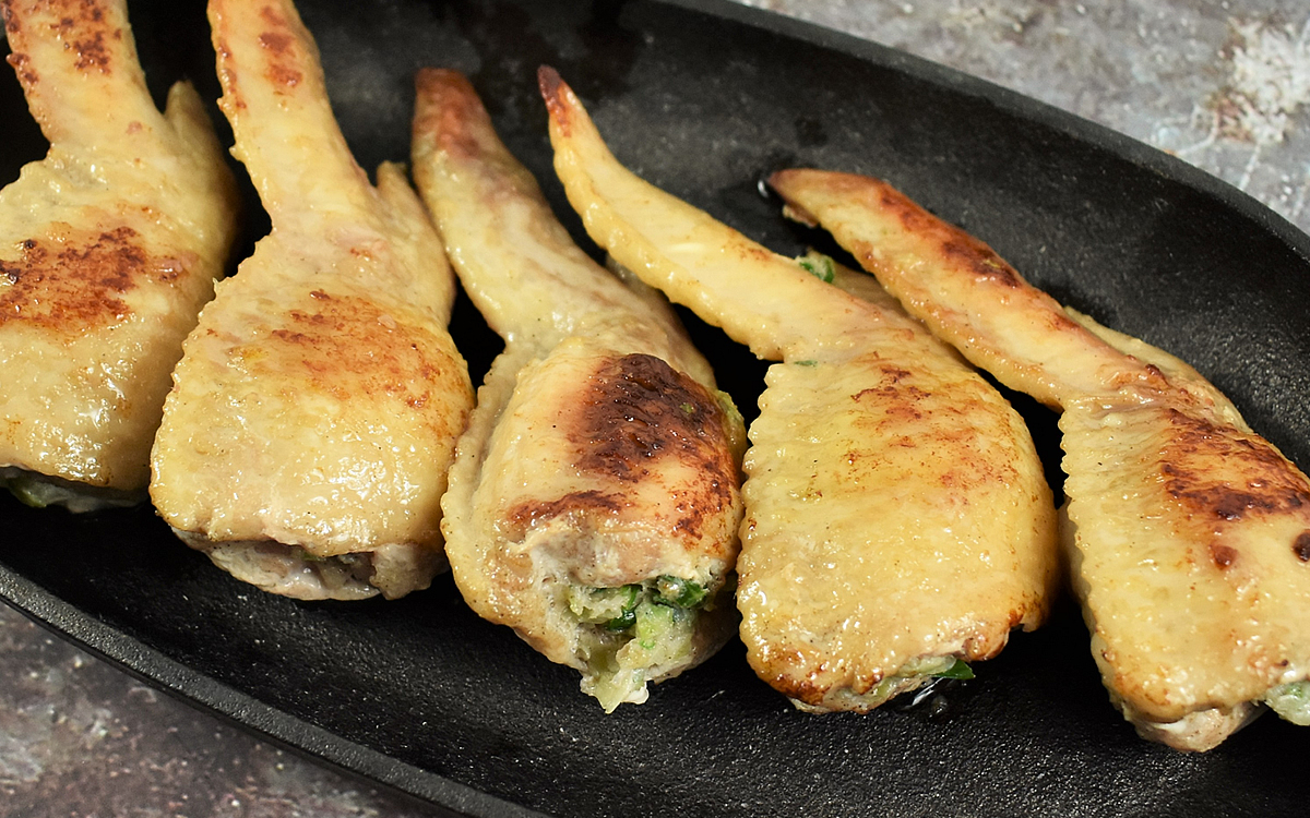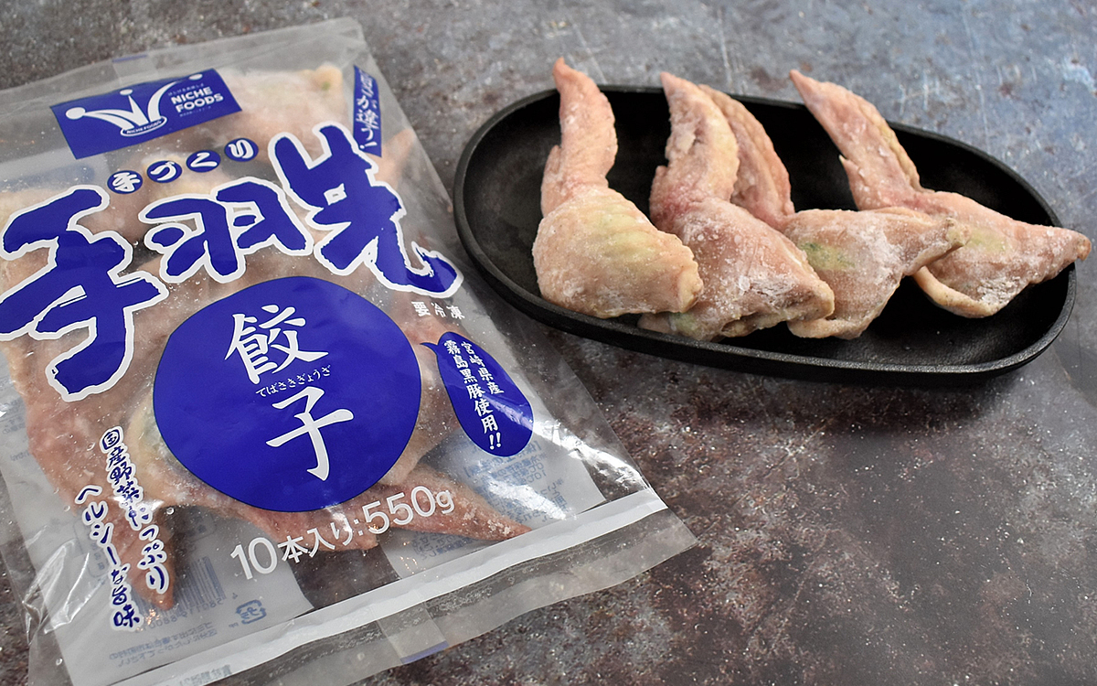 あまり聞き慣れない“手羽先餃子”は九州・宮崎県が発祥地。なんと手羽先の中骨を取り出して餃子の餡をつめ込んだ一品で、ご当地グルメとしても親しまれています。ちなみにミート21ショップでは同商品の他にも、手羽先チーズや明太子手羽餃子、高菜明太手羽餃子などが人気を呼んでいるそう。