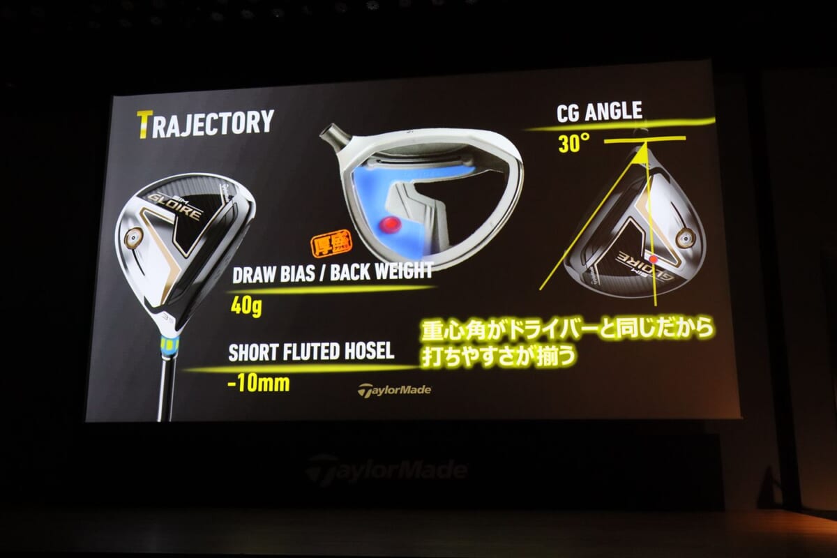 テーラーメイドでは、ドライバーと同時に「SIMグローレ」ブランドのフェアウエイウッド、レスキュー、アイアンも発売しました。フェアウエイウッドは重心角30度、貫通型スピードポケット、ツイストフェースと、ドライバーとのマッチングに重点を置き、スイングの連続性を高めるとともに、ソール形状の変更により摩擦を減らして芝生からの抜けを高めてスピードアップ。さらにヘッドサイズを大型化して飛距離性能と寛容性が向上しました。