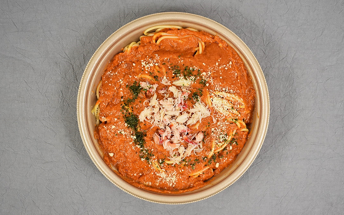 ●「本ズワイ蟹をのせた蟹のトマトクリームパスタ」(セブン-イレブン)