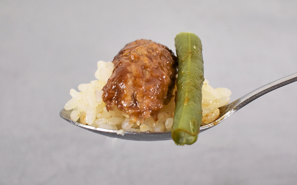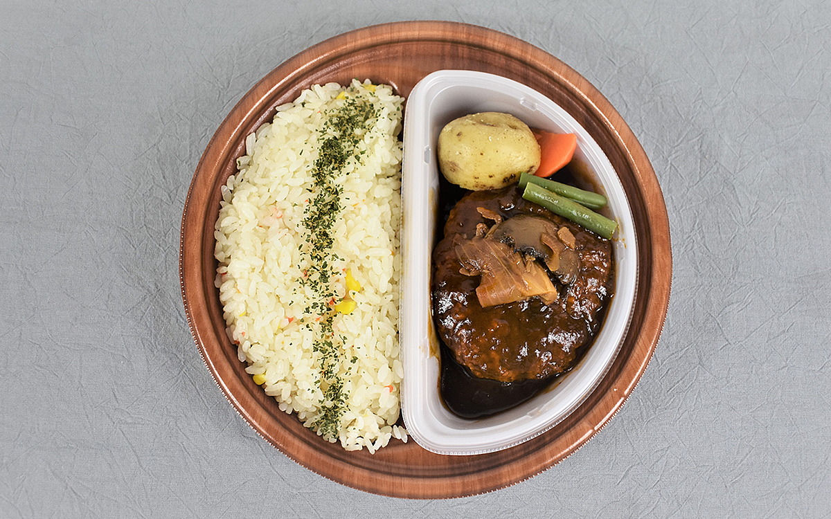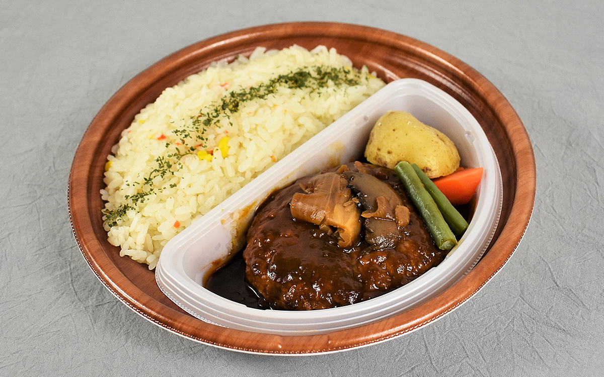 ソースが絡まったきのこ炒めや、ごろごろしたじゃがいも煮の食感もGOOD。ちなみにデミグラスソースはハンバーグを完食してもたっぷり余るので、野菜類やピラフにつけて残すことなく味わい尽くしてくださいね。