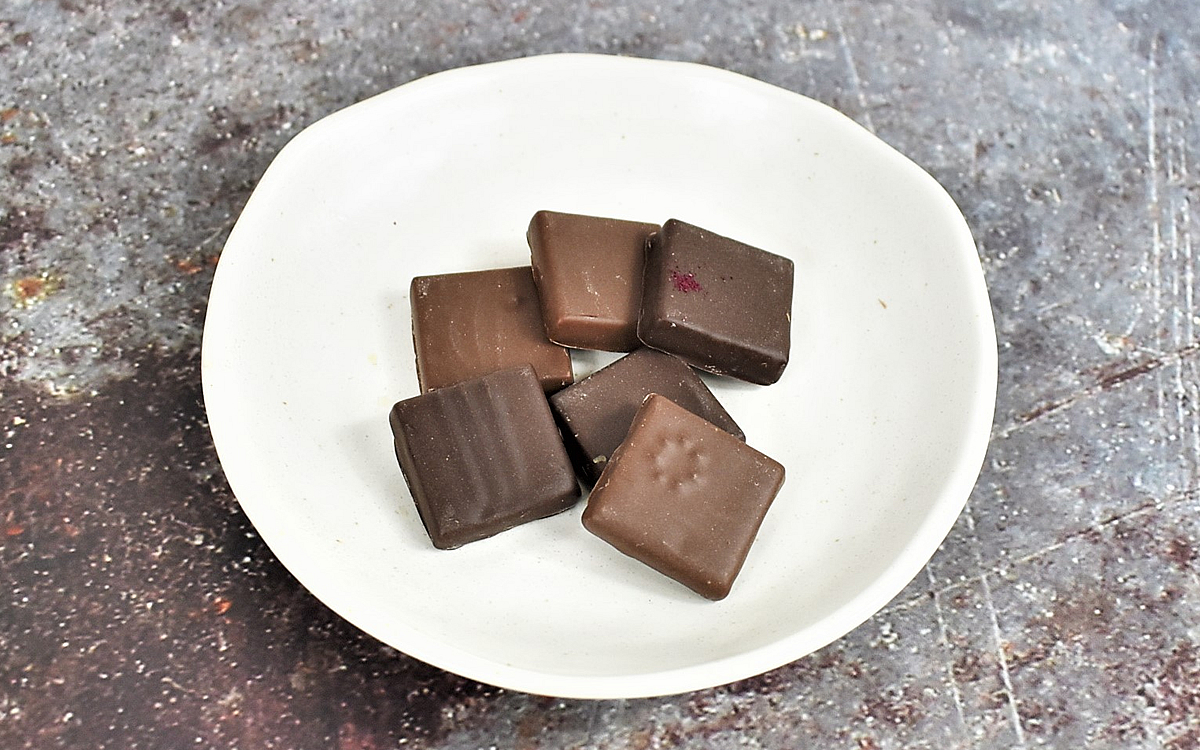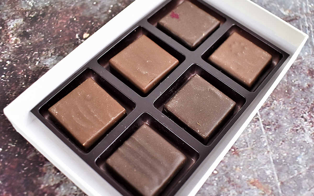 次にいただいたのはCASTELLA。長崎県雲仙市の“太陽卵”を使っているため、チョコなのにカステラを思わせる不思議なフレーバーです。さらにROSEには滋賀県のバラ、HONEYには兵庫県の“栗のはちみつ”、HERBには兵庫県で栽培されたミント、SAKEには奈良県の日本酒を使用。それぞれ違う香りを存分に満喫でき、6つ食べ終わるころには本当に“旅”をしたような気分になれますよ。