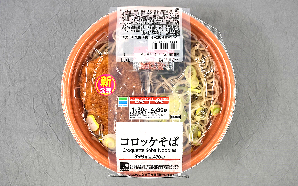 シンプル&奥深い味わいが人々を虜にし続ける“そば”。ツルっとしたのどごしのおかげで、いろいろな味を楽しめますよね。そこで今回は、そばにコロッケをトッピングしたファミリーマートの新商品「コロッケそば」(430円/税込)をピックアップ。そば屋でも度々見かけるコロッケとそばの組み合わせですが、果たしてお味は…?