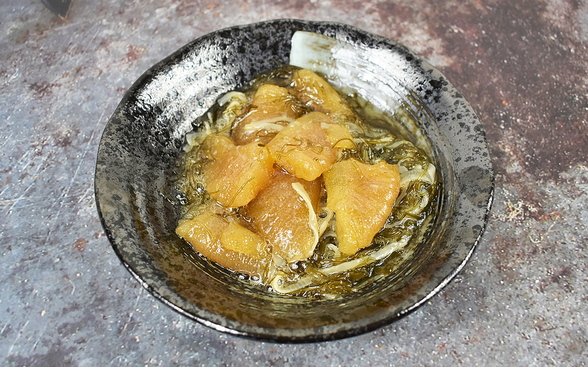 松前漬けの持ち味は数の子だけにとどまらず、イカと昆布が醸し出す味わいもGOOD。コリっとした歯ごたえもしっかり感じられました。また噛めば噛むほど潮の香りにも包まれていくので、海の幸をいただく喜びを存分に堪能できますよ。