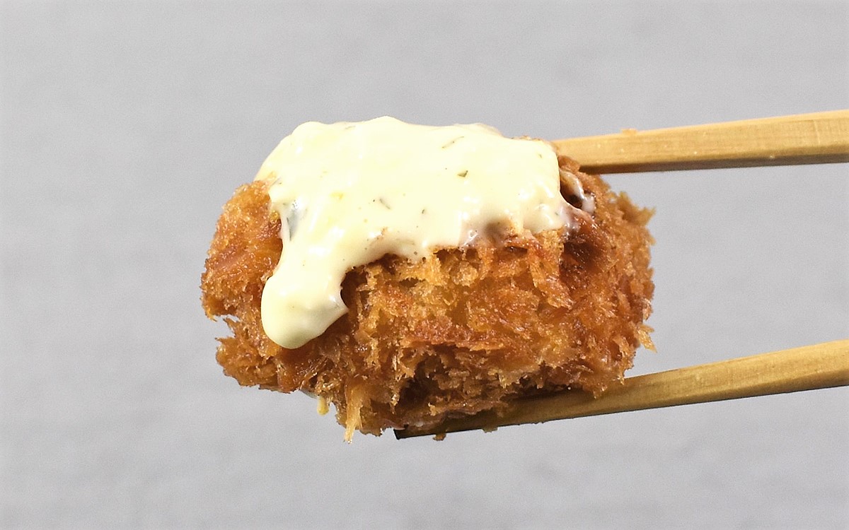 まずホタテをひとくちいただくと、驚くほどの優しい甘さを実感。ジューシーさに加えて、ホタテ特有のプリプリとした食感がたまりません。貝柱の風味をしっかり味わうことができるうえ、なめらかなタルタルソースとも絶妙にマッチ。こってりまろやかな口当たりが口の中を満たしてくれます。