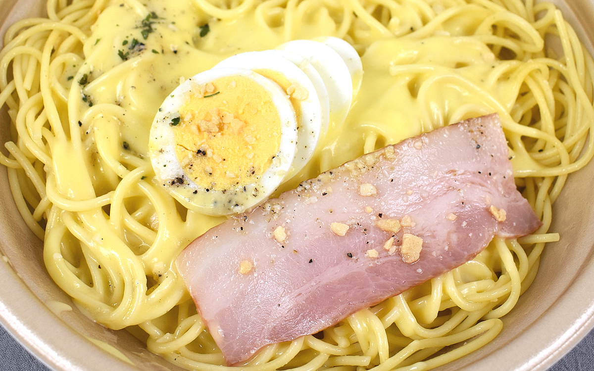 マイルドな卵とチーズが奥深い味を演出するカルボナーラ。今回は、そんなカルボナーラをガッツリ食べられるメニューをピックアップしていきます。その名もローソンの「大盛! ガーリックカルボ」(530円/税込)。ガーリック&カルボナーラのコンビに期待するローソンファンからも注目されているようで、SNS上には「どれくらいにんにくの風味を味わえるのか楽しみ」「名前からしておいしそうなのが分かる(笑)」との声が相次いでいました。