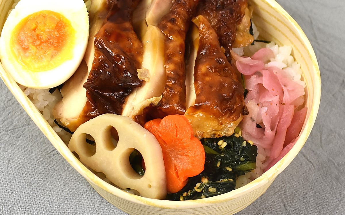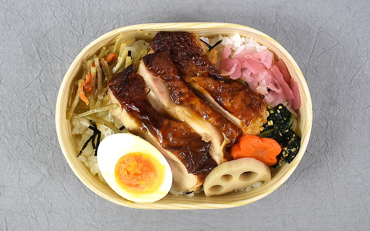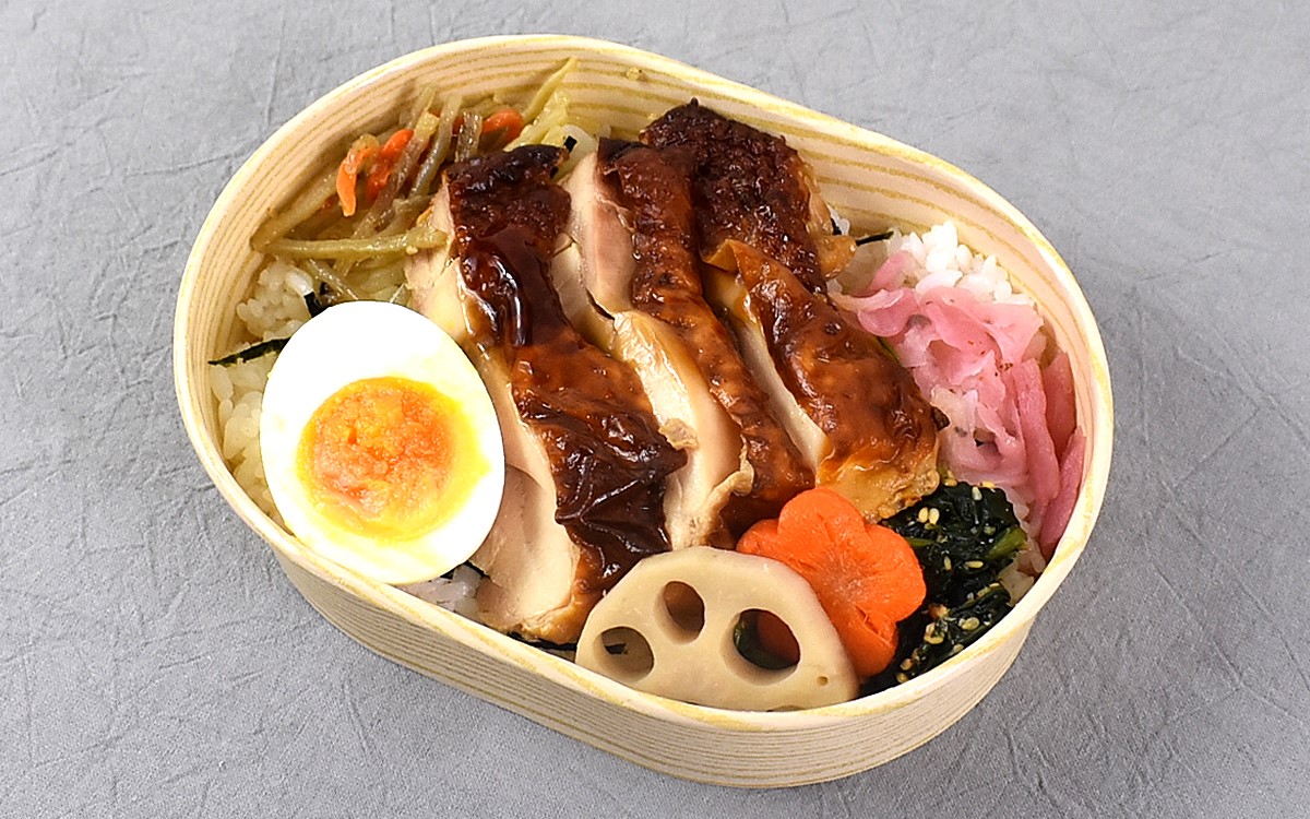 栄養に偏らずバランスよく盛りつけられた「IROCORO 鶏の糀しょうゆ焼わっぱ風弁当」。日頃の食生活を見直したい方は、特に必見のお弁当ですよ。