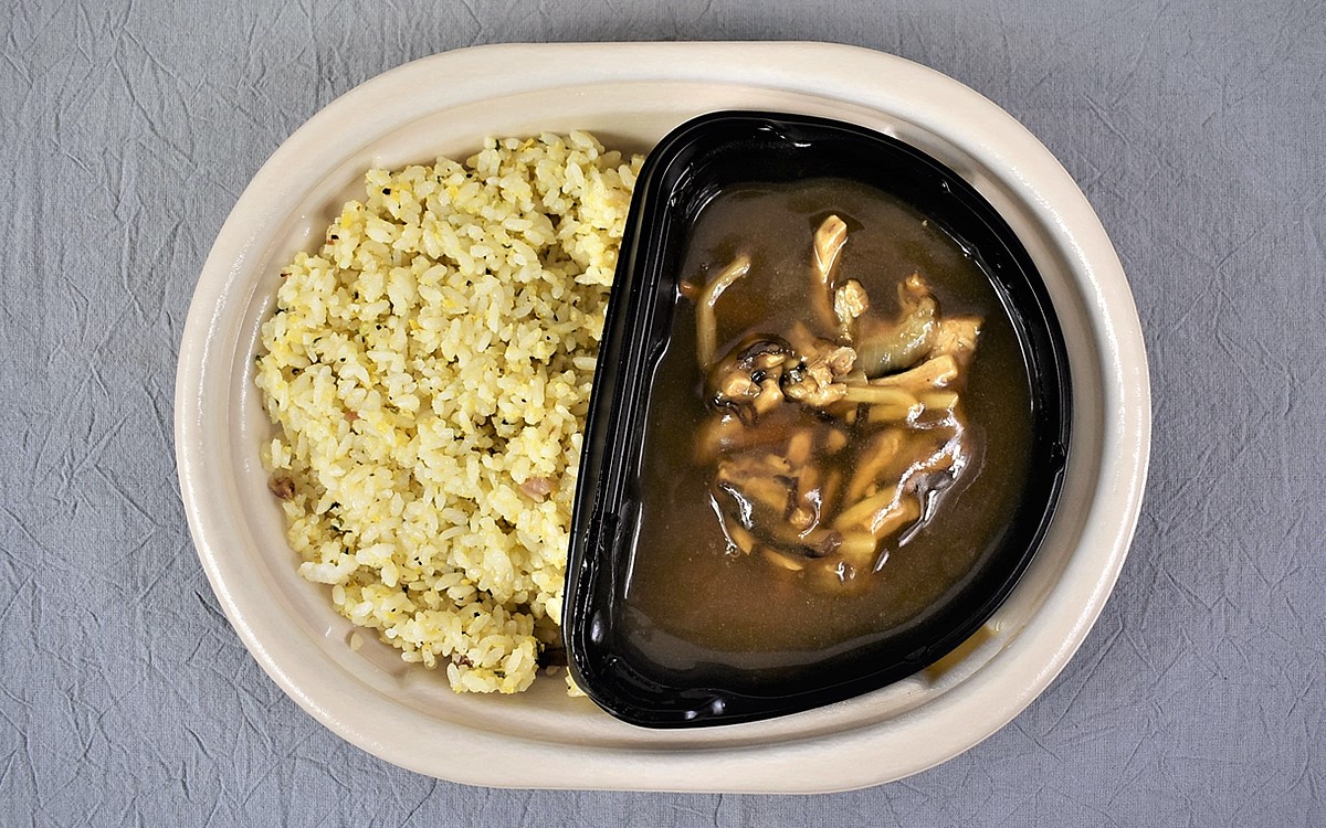 500Wの電子レンジで温めてからパッケージを開けると、ふわっと鼻を抜けていくごま油の風味。醤油のこうばしい香りにも一層食欲をかき立てられ、期待に胸が高まります。