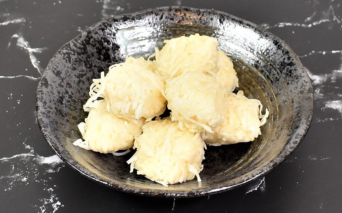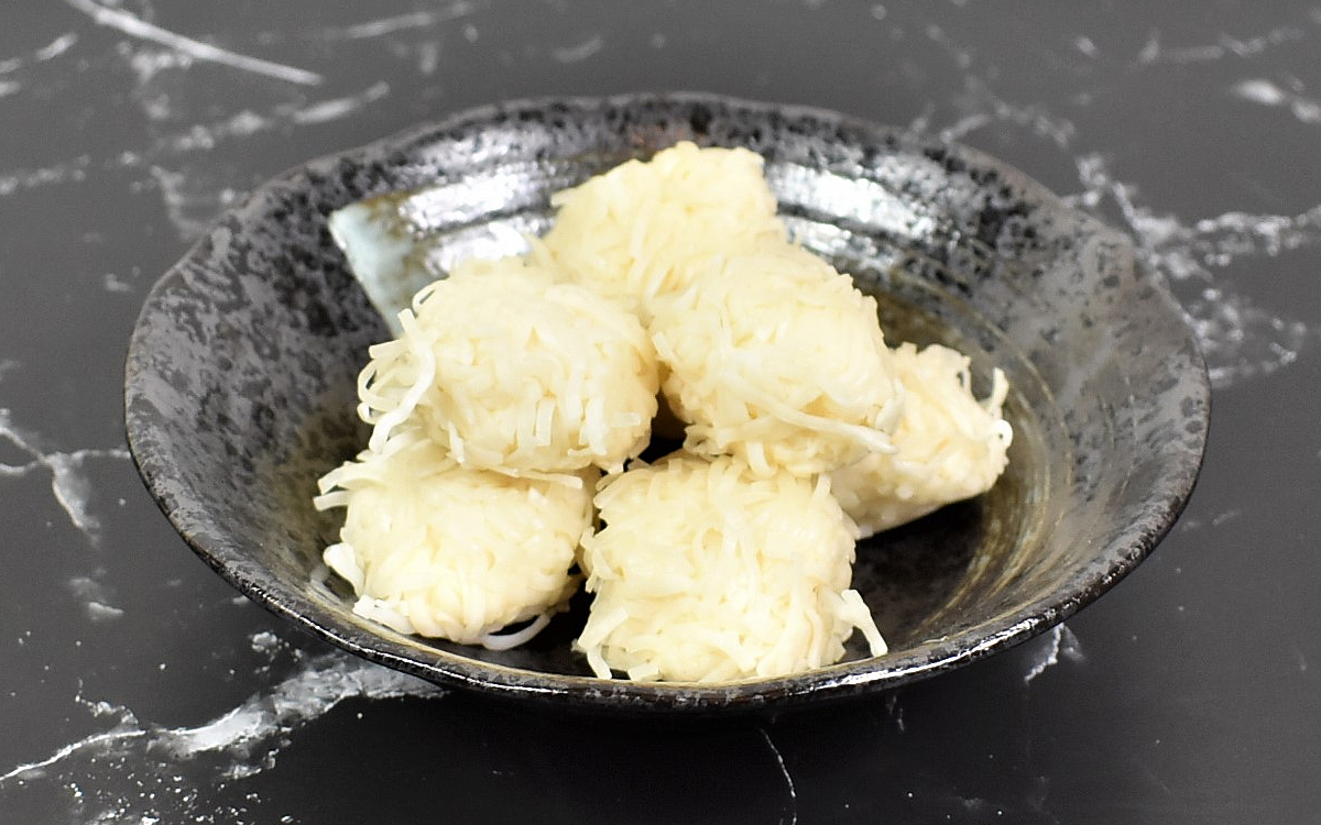 一般的なしゅうまいはワンタンの皮で具材を包んで蒸していきますが、イカしゅうまいは皮を細かく刻んで具材に纏わせているのが特徴。おかげでイカしゅうまい特有のもちもち感と心地よい舌触りが楽しめるわけです。試しにひとくち食べてみて感じたのは、みずみずしい皮と肉厚な具材の歯ごたえ。魚介の風味を余すことなく味わえますよ。