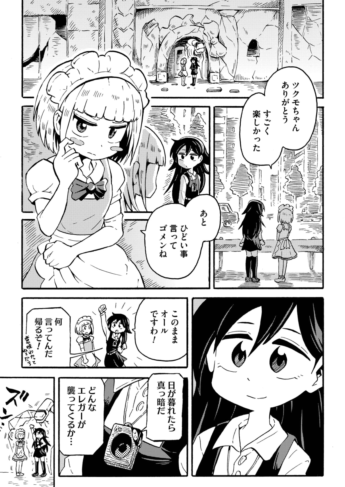 ディストピア化した暮らしを抜け出したいチリヅカに対して、この世界で暮らしたい気持ちを見せたツクモ――。いまだ世界と暮らしの先行きが見えない中、二人の気付かぬ間にスマホエレガーが…。