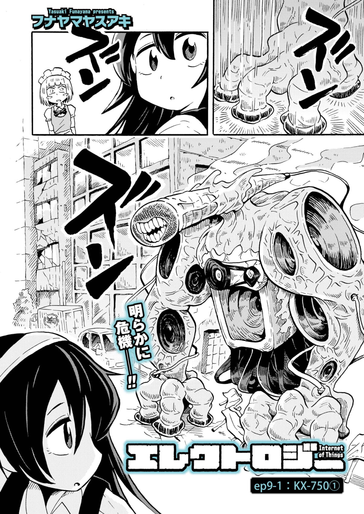 本連載は「モノ」をテーマにしたマンガ連載「エレクトロジー Internet of Things」。何不自由なく暮らしてきたお嬢様・神条ツクモが、荒れ果てた「アキバ」で謎の生命体「エレガー」と出会う!