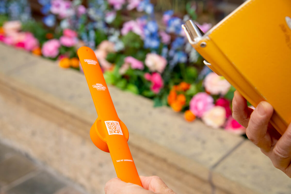 パワーアップバンドの裏側にあるQRコードを読み込むだけ。データは、エリアを訪れるたびに加算されていくから、スコアをどんどん更新していけます。これは、リピートしないわけにはいかない!