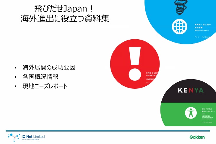 アイ・シー・ネットのHPでは、今回の活動実績をまとめた資料や、海外進出に役立つニーズレポートなども公開していますので、海外でのビジネス展開をお考えの中小企業の方は、ぜひアクセスしてみてください。