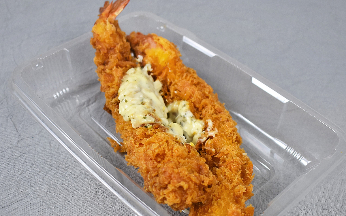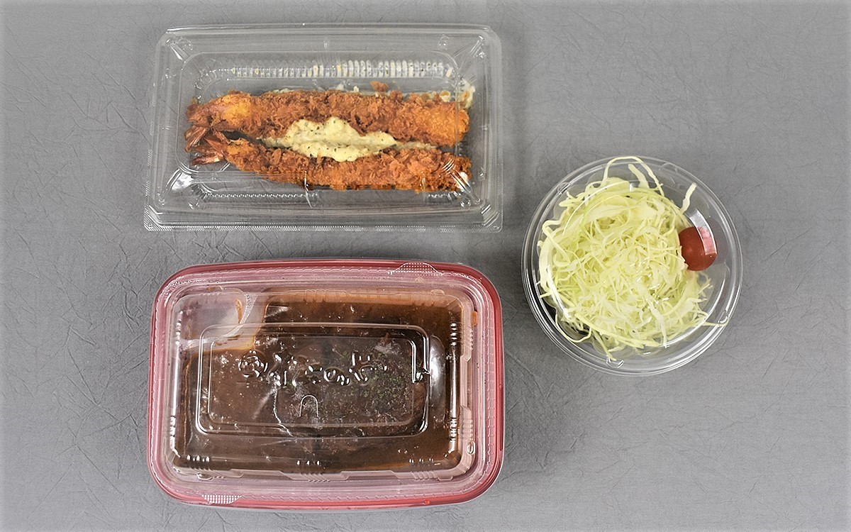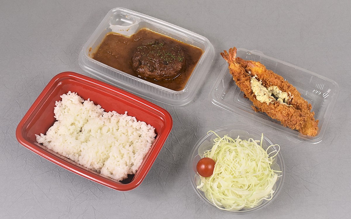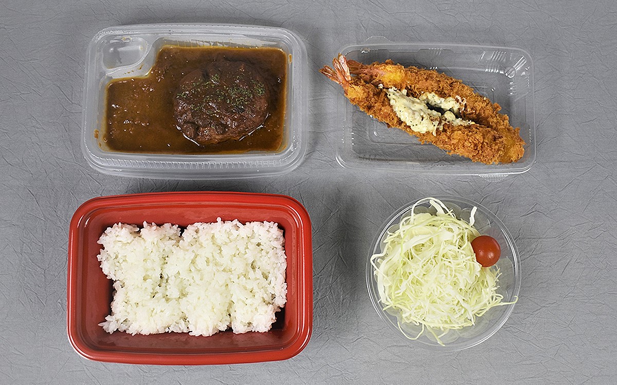 またもう1つのメインである海老フライも、衣はサクサク、中身はプリプリとベストな揚げ具合になっています。そのままでも十分おいしいのですが、付属のタルタルソースをかければ旨味が倍増。ハンバーグにも引けを取らない満足感のある一品です。