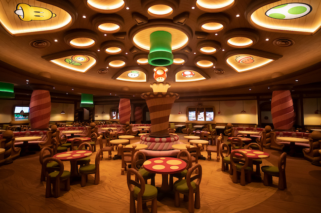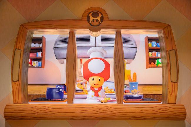 スーパー・ニンテンドー・ワールドには、魅力的なグルメもいっぱい。エリア内にある「キノピオ・カフェ」では、世界でここにしかいないキノピオシェフがつくる料理がいただけます。働き者のキノピオたちが一生懸命つくってくれたお料理は、どれも絶品。なんと、ドリンクに使う氷までキノピオたちが作ってくれているなんて、想像しただけで、きゅんです!