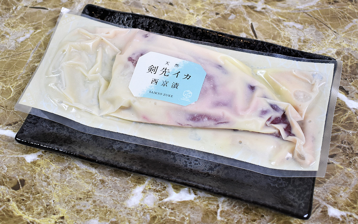 じつは西京漬に隠し味として、酒粕が加えられているのがポイント。酒粕を採用した手法は料亭や割烹にならったもので、ホロっとやわらかい口当たりに仕上がっています。濃厚な旨味を持つケンサキイカは、オリジナルの西京漬と相性抜群。西京漬の味がケンサキイカにしっかり染みこんでいるため、上質な味噌の風味を味わえました。