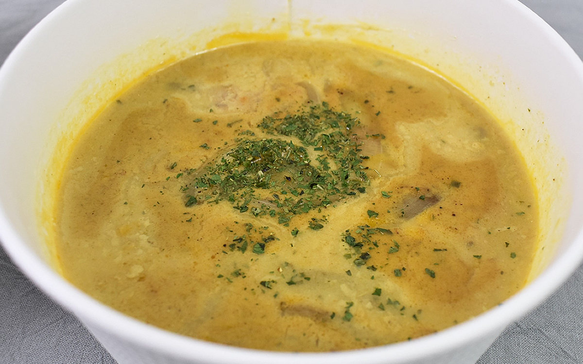 それではオマール海老ソースの実力をじっくり確かめていきましょう。さっそくいただいてみると、クリームカレーのコク、甘み、オマール海老の旨味エキスが口の中に広がっていきました。クリーミーでありながらその風味は海の香りを連想させ、オマール海老の芳醇な味わいをしっかり楽しむことができます。