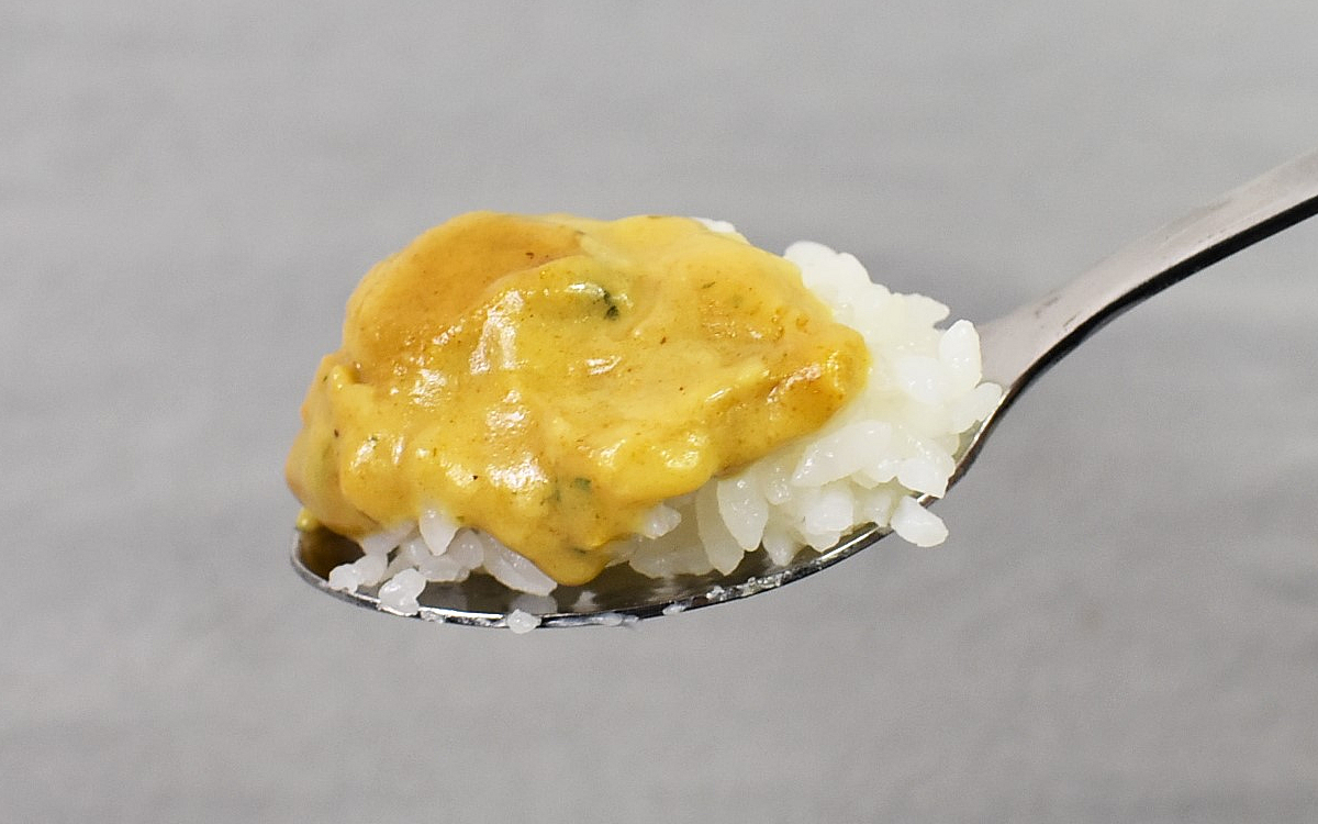 同商品の魅力はオマール海老ソースだけではありません。プリプリのむきエビも食感がよく、嚙めば噛むほど海の香りを感じることができました。エビの風味が主張しすぎることはなく、クリームカレーとの相性も抜群です。