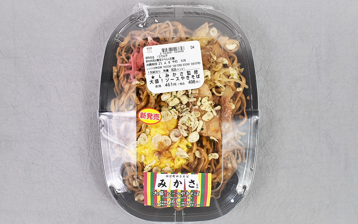 子どもから大人まで幅広い世代に愛されている“やきそば”。家庭でも作りやすい人気メニューですが、たまにはお店の本格的な味を楽しみたくなりませんか?そこで今回は見るからにボリューム満点な、ローソンの「みかさ監修 大盛! ソースやきそば」(498円/税込)をセレクト。どのような味わいなのか、じっくりチェックしていきましょう。