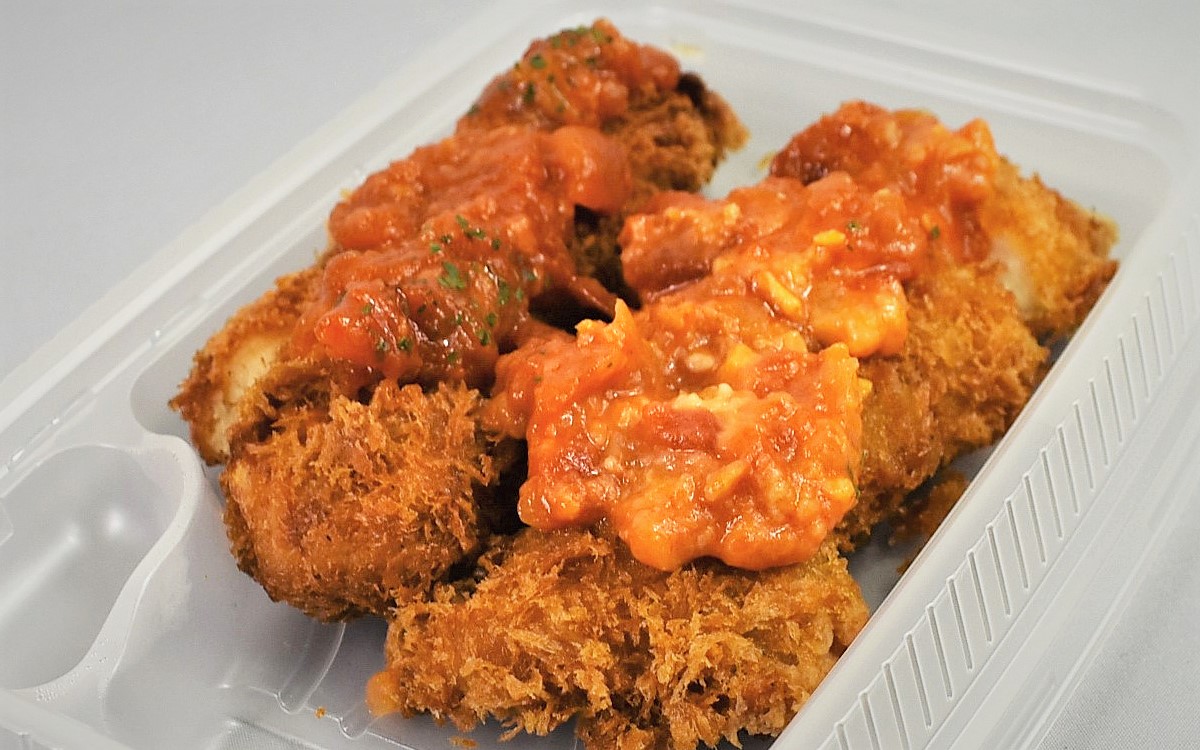 ボリューミーなかつとトマトソースが絶妙なハーモニーを奏でる同商品。食べごたえバツグンな一品をぜひ味わってみてくださいね。