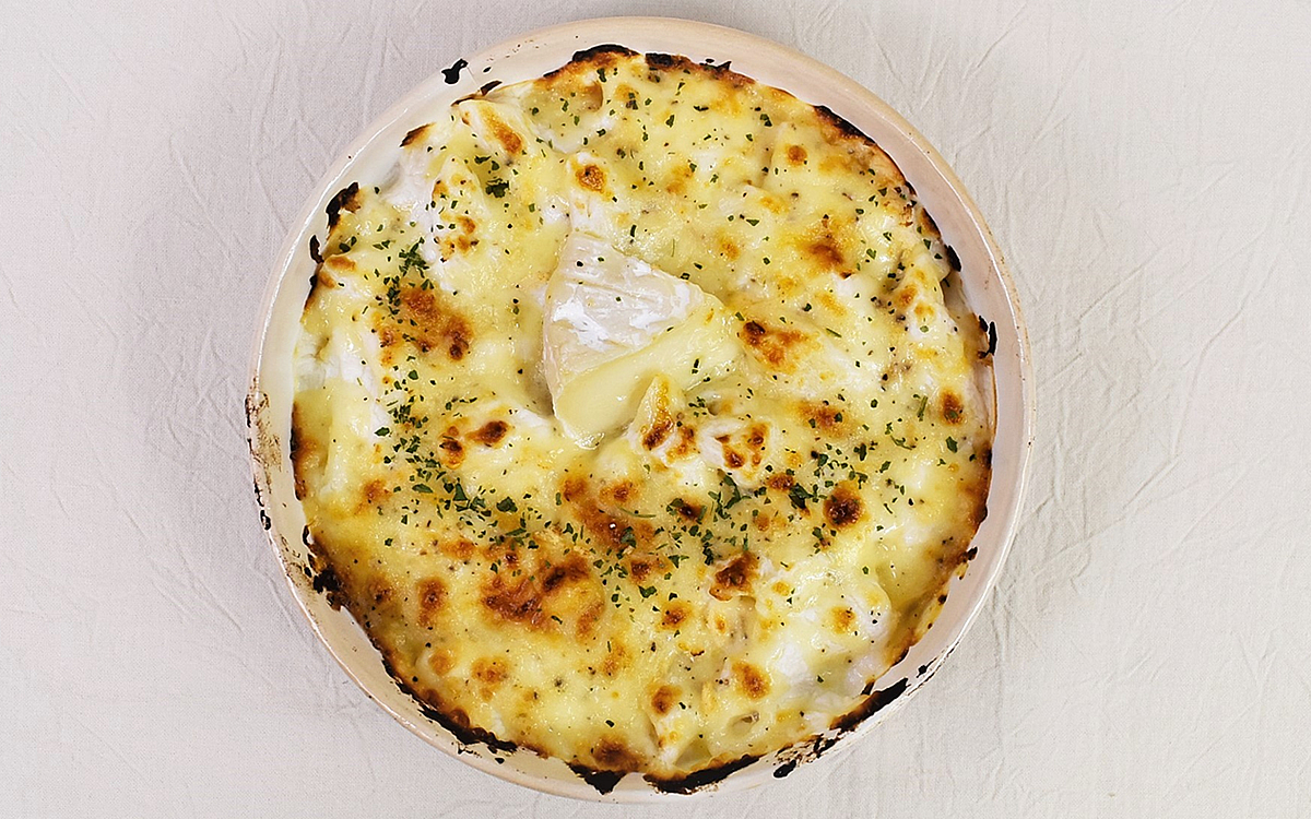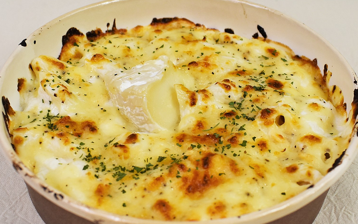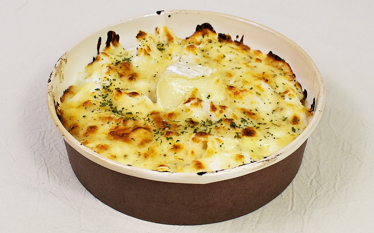 もちろんグラタンソースとカマンベールチーズの相性はバツグン。カマンベールチーズを崩してグラタンソースと絡めて食べると、奥深い味わいになるのでオススメですよ。