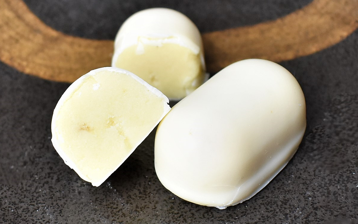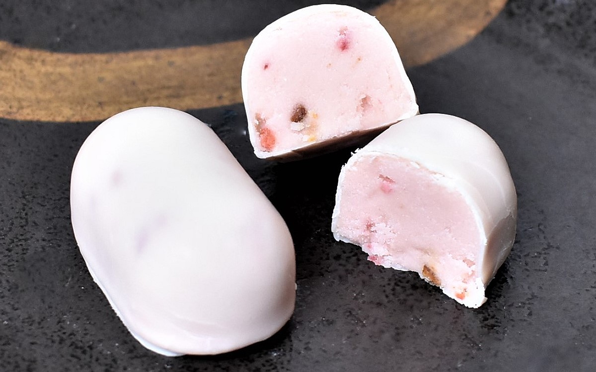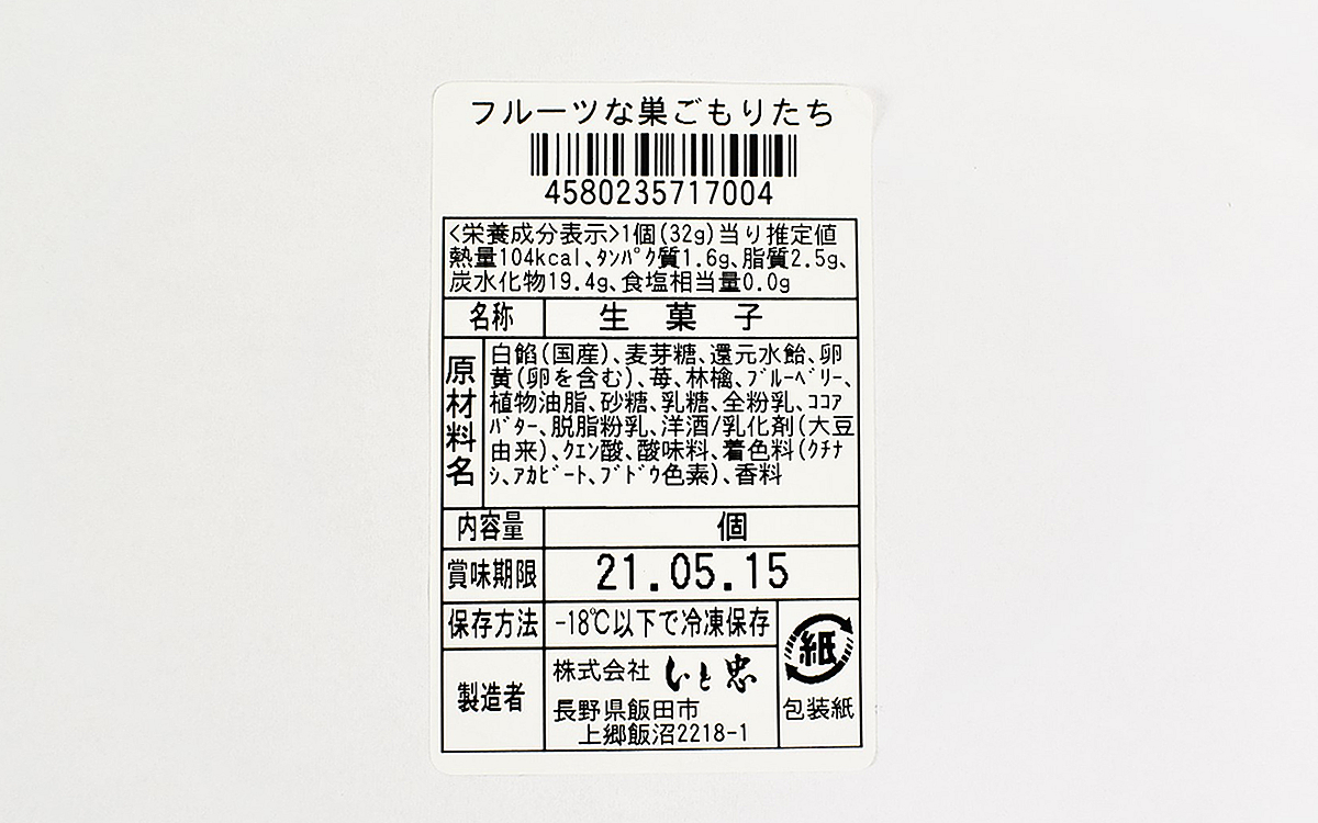 同商品を販売している「いと忠」は、長野県飯田市に店舗を構える菓子処。第20回全国菓子大博覧会にて金賞を受賞した「いと忠巣ごもり」が看板商品です。ホワイトチョコレートで餡をコーティングした和洋折衷な味わいが人気を集め、お土産として大ヒット。そんな「いと忠巣ごもり」をベースに、試作を繰り返してホワイトチョコレートに合う3つのフルーツを合わせた商品が「フルーツな巣ごもりたち」です。