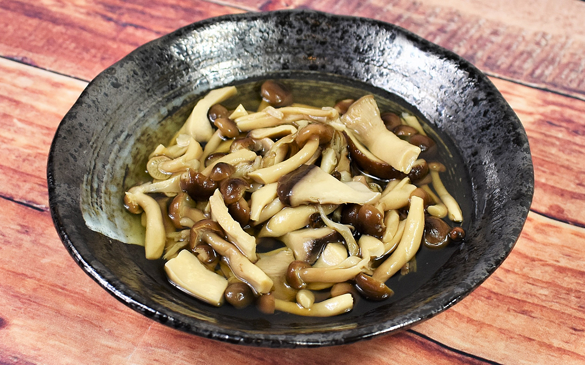 さっそく、一口いただいたところ、酢本来の酸味とともにきのこの旨味が口の中に広がりました。酢の芳醇な香りが鼻に抜け、酸味だけでなく甘みもしっかりめ。しめじとエリンギは硬めのこりっとした食感が楽しく、しいたけとまいたけは噛めば噛むほど旨味が染み出します。4種類のきのこをミックスすることで生まれる出汁のような深い味わいがたまりません。