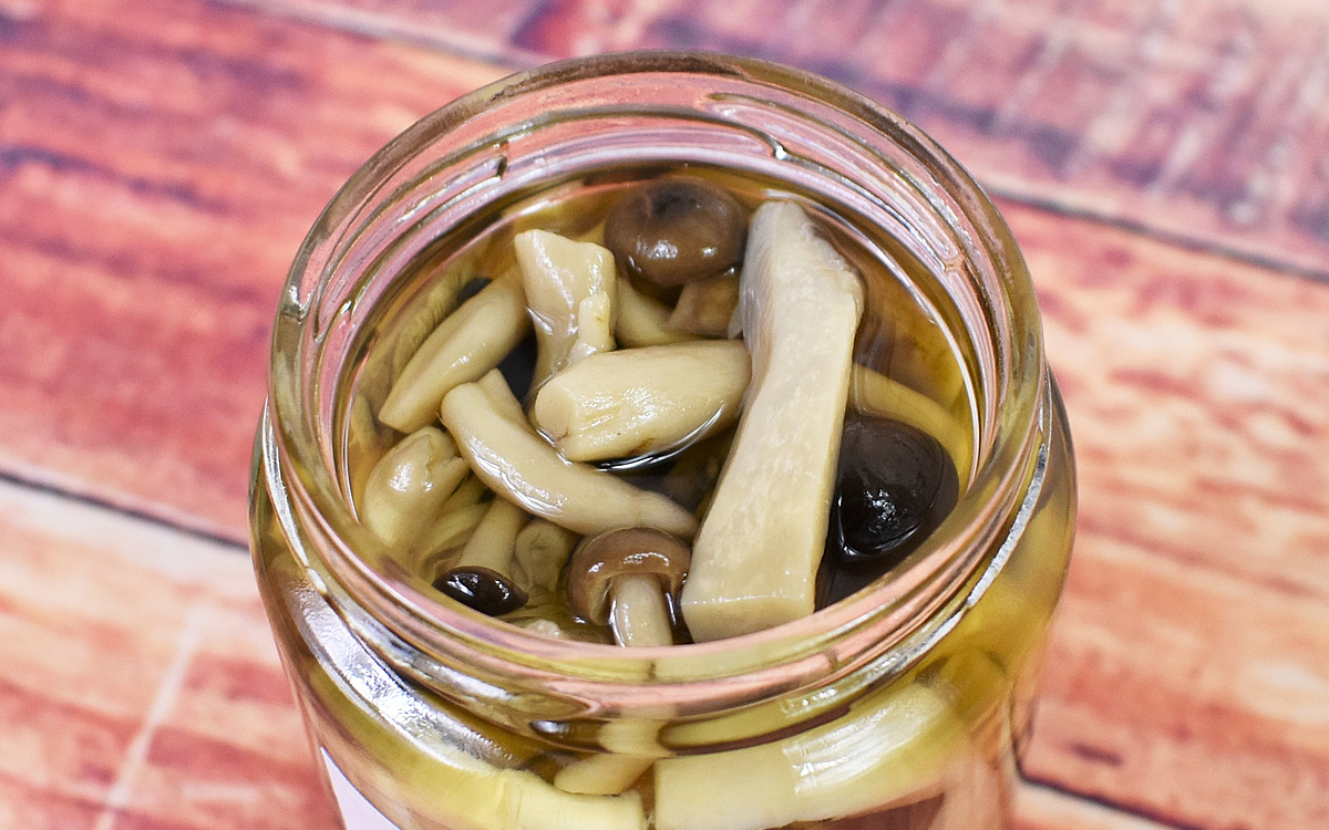 かわいいラベルが貼られたビンに入っている「お酢屋のピクルス きのこ」。しめじ・エリンギ・まいたけ・しいたけの4種類のきのこがたっぷり詰まっています。フタを開けてみると、酢のツンとした鋭い匂いではなく、まろやで優しい香りが漂ってきました。