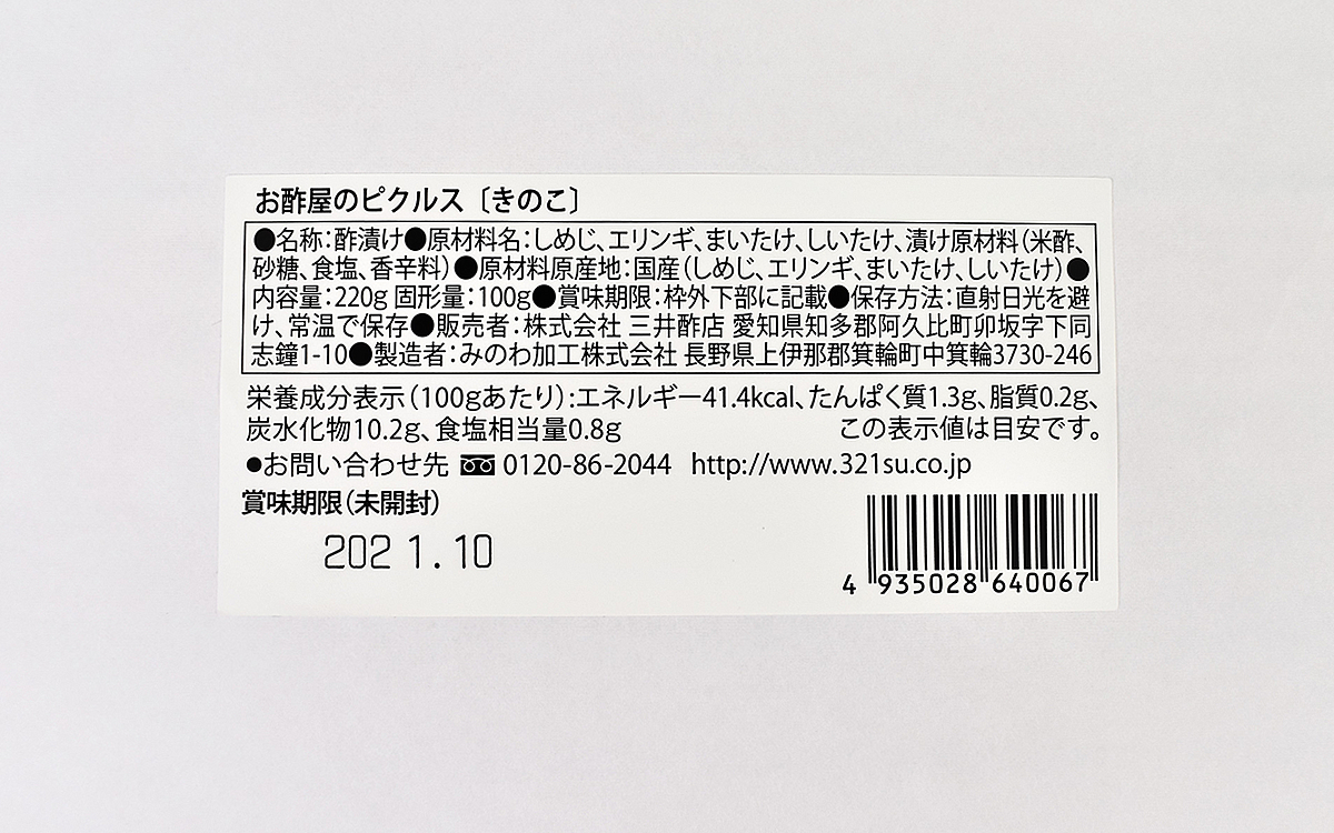 ●「お酢屋のピクルス きのこ」(三井酢店)