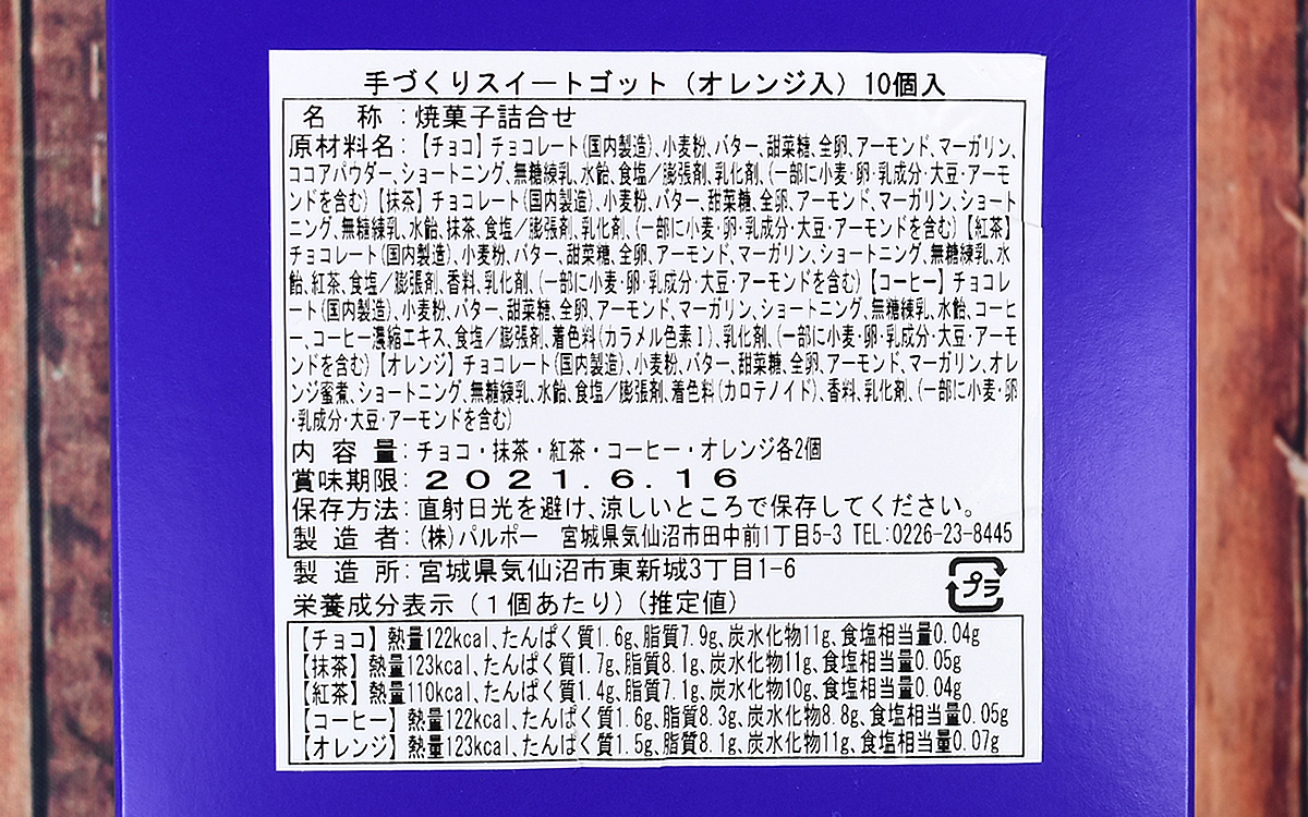同商品を手掛けるのは、宮城県気仙沼でパティスリーなどを運営するパルポー。看板商品として人気を博す「Sweet Gotto」は、創業時から職人の手で1つ1つ作られています。公式サイトによると“大量生産のできない手間暇のかかるお菓子”で、職人の勘と技を頼りに味を守っているのだとか。今回は5種類の味が2つずつ入った10個入りを注文してみました。