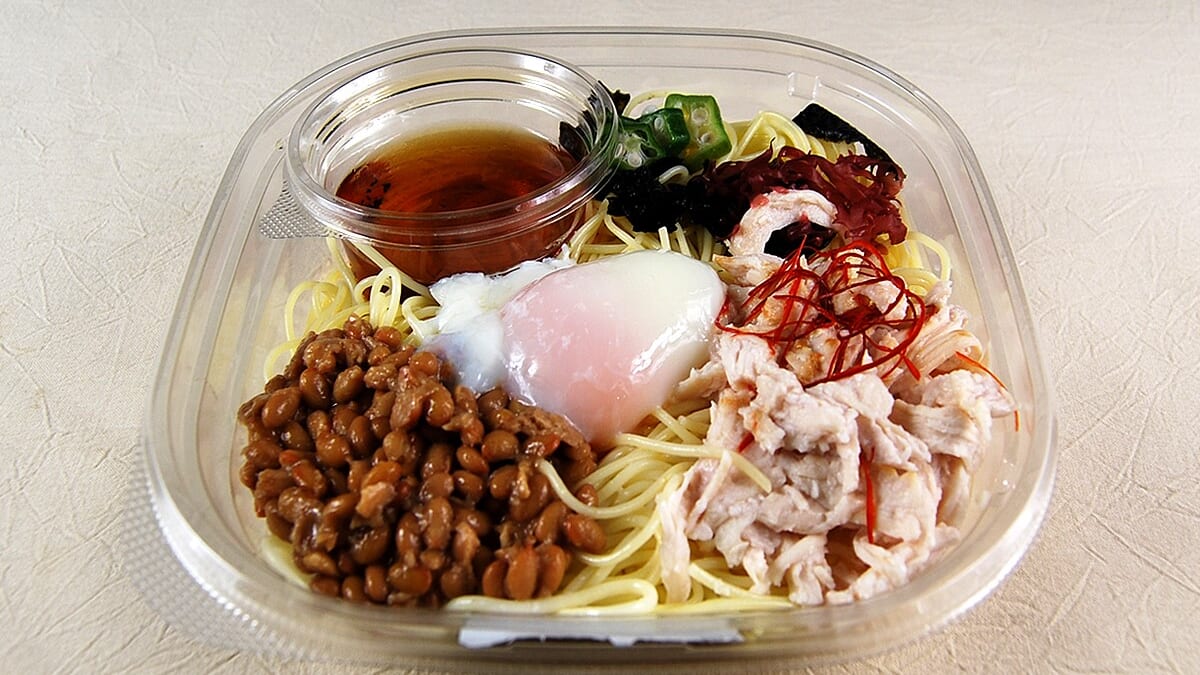 さっぱりメニューである同商品の満足度を底上げしてくれるのが蒸し鶏。しっとり柔らかく、食べごたえ抜群です。もう一つのメイン具材である納豆は、麺に絡みやすい小粒で粘り気たっぷり。納豆独特の匂いが控えめで、ほとんど気にならないもうれしいポイントですよ。