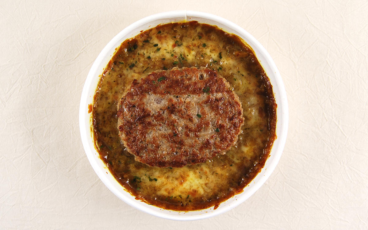 ハンバーグはシンプルですが、噛むたびに肉の旨味がジュワっと出てきてジューシーな味わい。ドリアだけだと物足りないかも…… という人でも満足感を得られるでしょう。これ1品でカレーとハンバーグを同時に味わえるなんておトク感がありますよね。