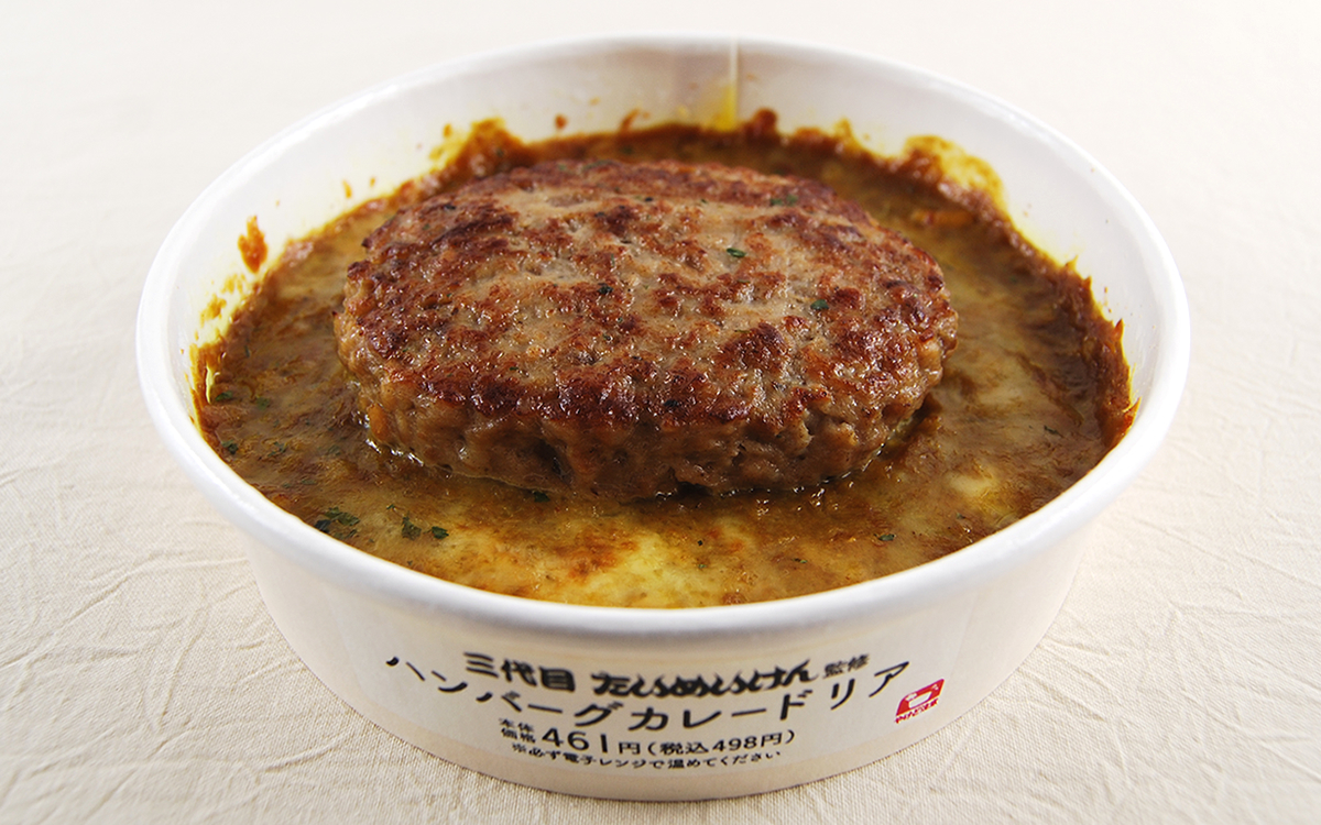 実際にお店に行ったことがなくとも、老舗洋食店「たいめいけん」の名前を聞いたことがある人は多いはず。同店のカレーはレトルト商品化もしており、ファンが多いメニューの1つです。さらに今回のコラボ商品は、ドリアの上に分厚いハンバーグをドンと乗せた“ハンバーグカレードリア”。手軽に名店の味が楽しめることに加えて、食べごたえにも期待できそうです。