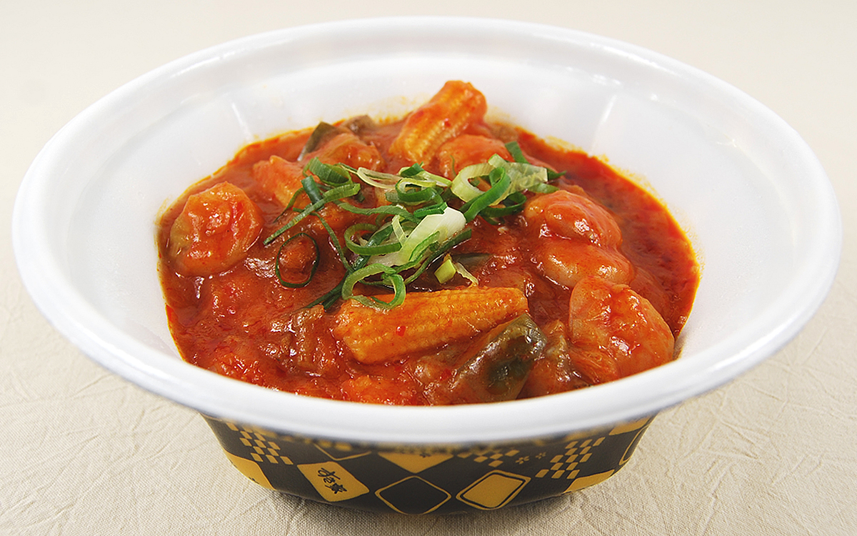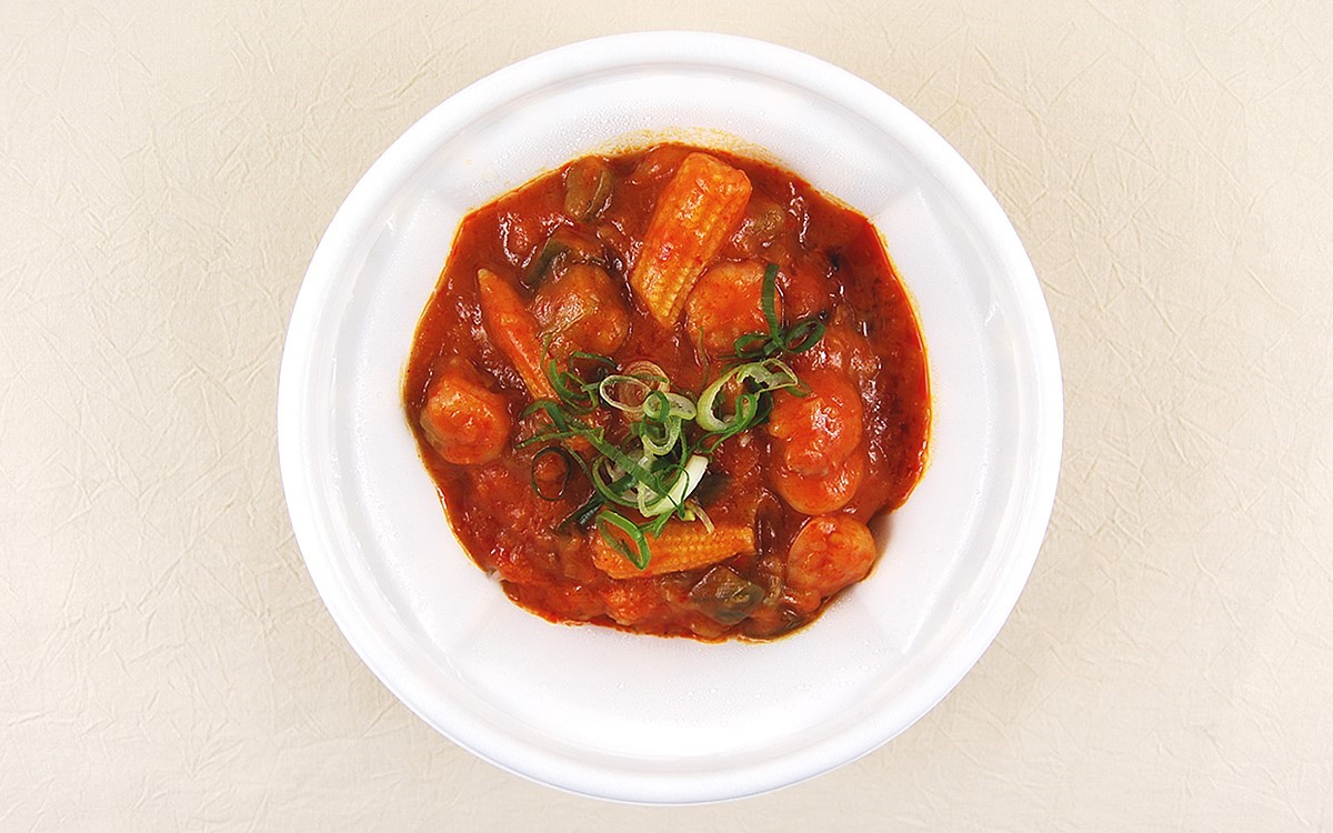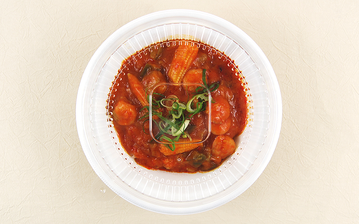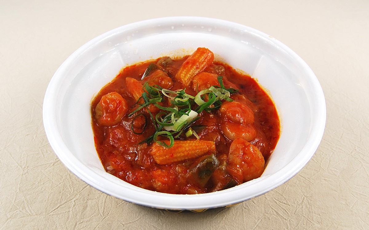 主役のエビは期待通りプリプリで、チリソースとの相性もバツグン。加えてトロトロに柔らかいナス、シャキっと歯ごたえのあるヤングコーンも同商品に欠かせない存在となっていました。様々な食感が楽しめるため、シンプルなエビチリに比べて満足感が桁違いですよ。