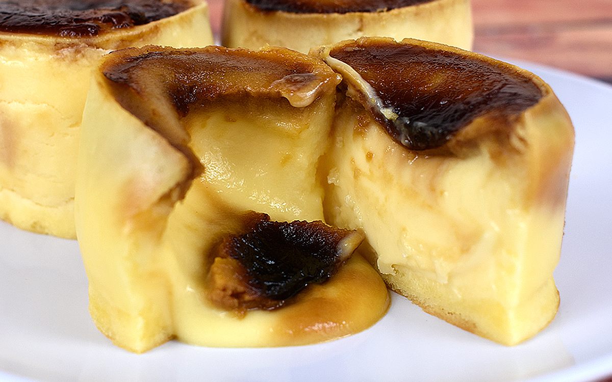 ひと口食べると、想像以上に濃厚なチーズの風味にびっくり。甘みと塩味のバランスが良く、噛めば噛むほどチーズの深いコクが広がります。茶色く見える表面にはほろ苦いカラメルソースがかかっており、甘さを引き立てる大人な味わいがたまりません。