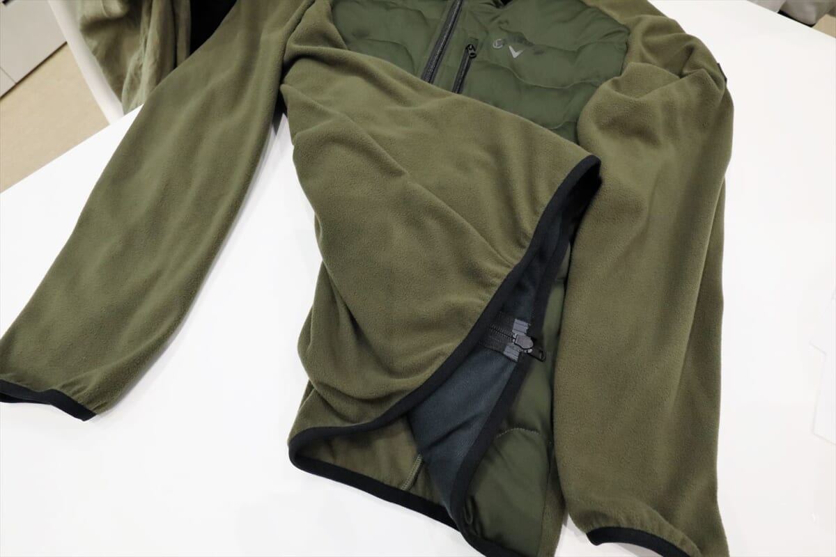 キャロウェイでは通常のラインとは別に、直営店・オンライン・百貨店向けのラグジュアリーブランド「レッドレーベル」を用意しています。同レーベルでもスターストレッチ素材を使用したブルゾンを同時発売します。全面的にスターストレッチ素材を使用し、より動きやすい作りになっています。ポケットのドローコードや肩にワンポイントで赤を使い、レッドレーベルの特別感を醸し出しています。ブラック、ホワイト、カーキの3色展開です。