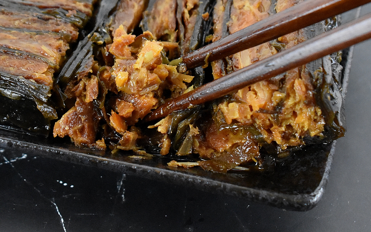 昆布で具材を巻き、甘じょっぱく煮た料理“昆布巻き”。「お正月におせちで食べるくらいで、普段はあまり食べる機会がない」という人も多いのではないでしょうか。今回お取り寄せした「サーモン昆布重ね巻」(1641円/税込)は、一般的に想像する昆布巻きとはかけ離れたビジュアル。どのような味が楽しめるのか、期待が高まります。
