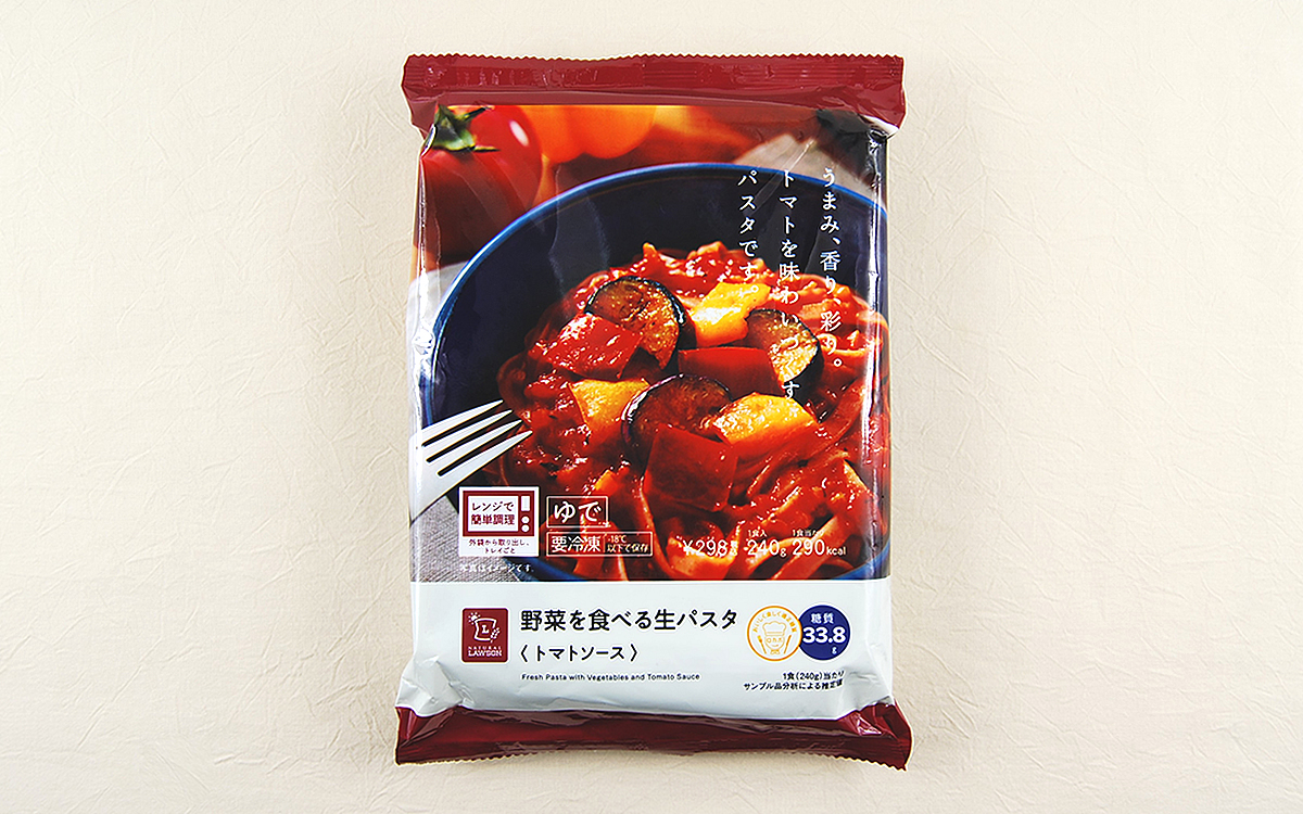 乾燥パスタに比べて、コシが強くモチモチした食感が楽しめる“生パスタ”。飲食店のメニューはもちろん、コンビニ弁当に使われることも珍しくありません。しかし今回ピックアップしたローソンの「野菜を食べる生パスタトマトソース」(298円/税込)は、冷凍食品でありながら本格的な生パスタを堪能できる一品。独特の食感をどれほど味わえるのか、さっそくチェックしていきましょう!