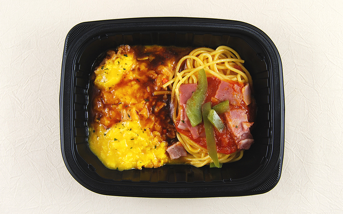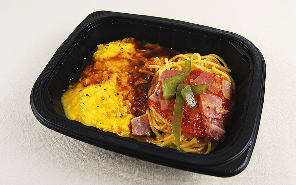 一方ナポリタンは甘めに味つけされており、塩気のあるベーコンと相性ピッタリ。シンプルだからこそ、どこか懐かしさを感じる味わいを堪能できます。お弁当の付け合わせとしてパスタが入っていることは多いですが、同商品においてはオムライスと同等の存在感。麺量も申し分ありません。
