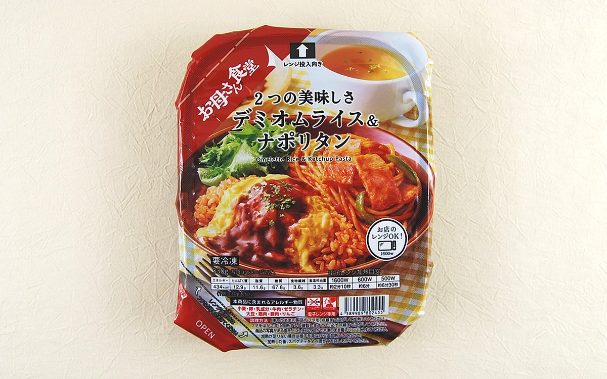 洋食の人気メニューであるオムライスとナポリタンを、ワンプレートで同時に味わえる同商品。「お母さん食堂」シリーズにはおかずやおつまみになる料理が多数ありますが、今回はどちらも主役級の料理が組み合わさった一品です。