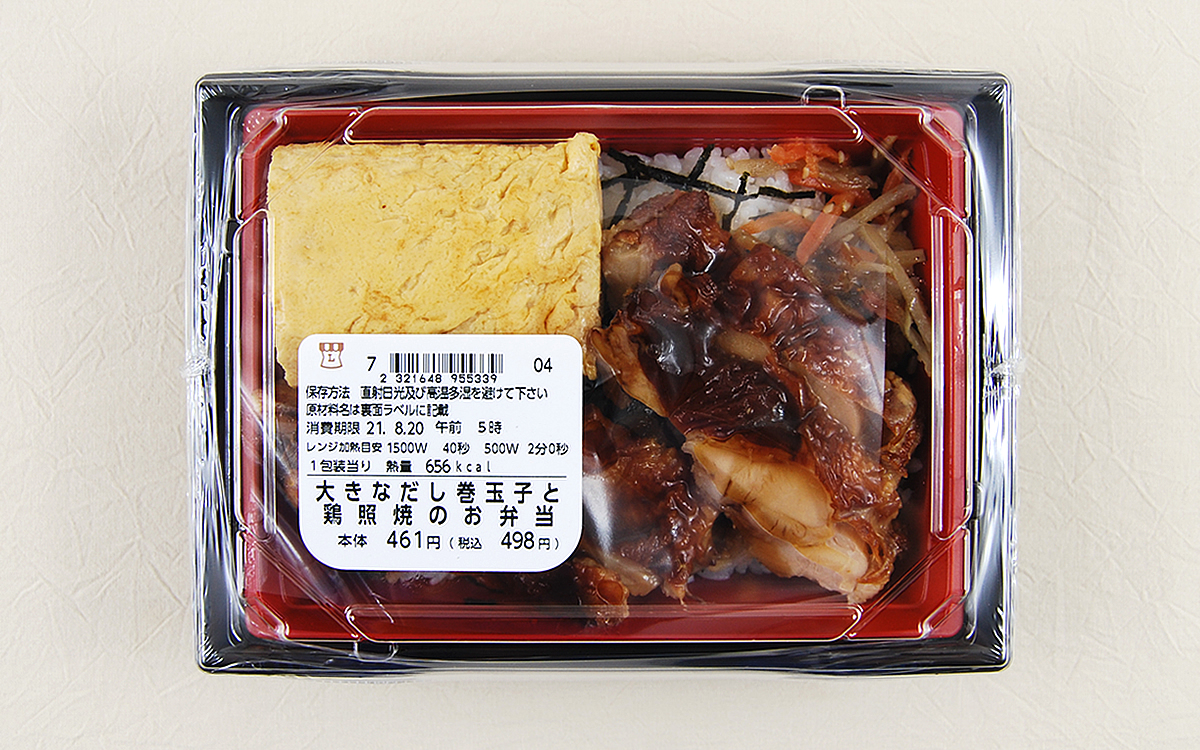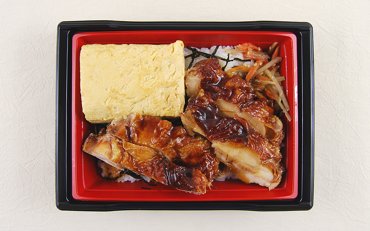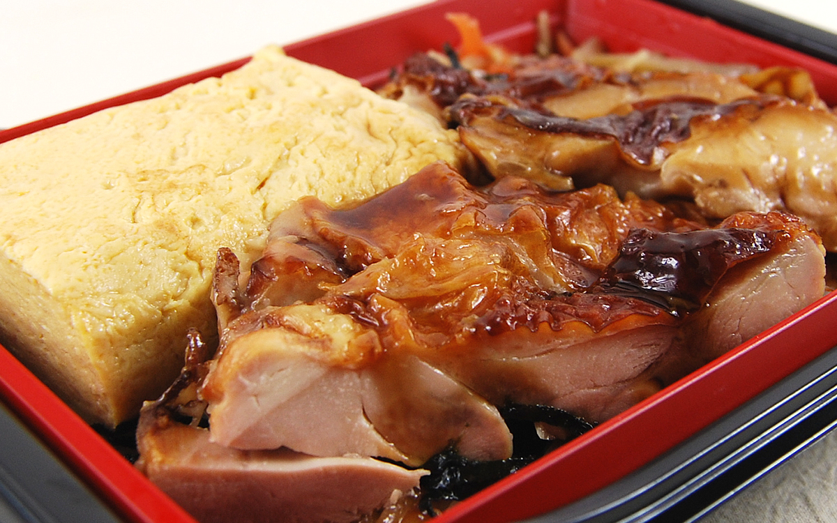 ご飯の上にだし巻玉子・鶏の照焼・刻み海苔・きんぴらごぼうが盛りつけられている同商品。「今日はガッツリ系の弁当じゃなくて、体に優しいあっさりした和食が食べたいな」というときにピッタリですよ。だし巻玉子だけでなく鶏肉の存在感もバツグンなので、食べごたえにも期待できそう。