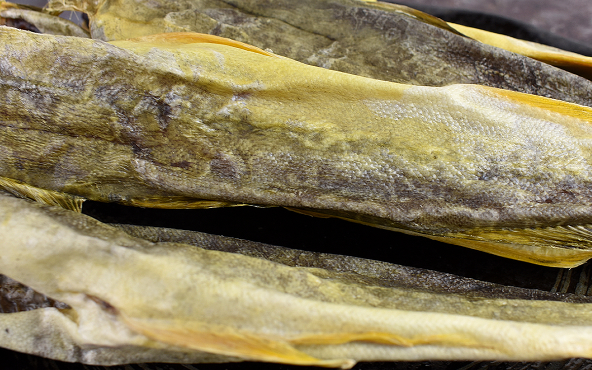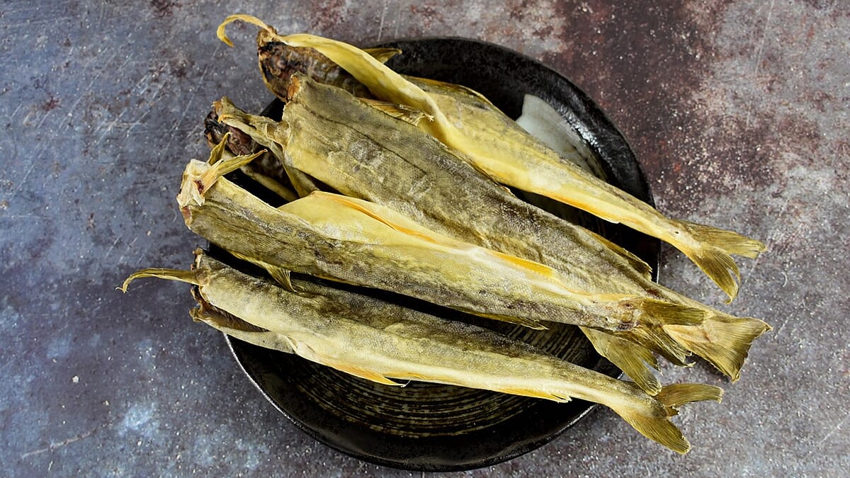 天日干しに適した20~25cm前後の魚体を厳選しているという同商品。今回購入した約250gのパックには、5尾のこまいが入っていました。からからに乾いたこまいは、手で触れてみると当然カチカチです。