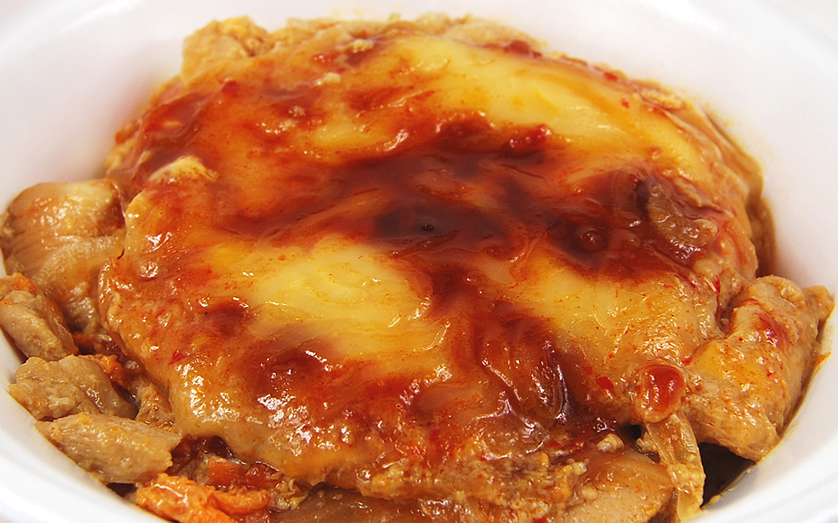 そもそもチーズタッカルビとは、肉や野菜をコチュジャンなどで味つけしてチーズを加えた韓国料理。ご飯が進むこってり濃い味が特徴で、あっさりした和風の親子丼とはかなりイメージが違いますよね。チーズがトッピングされた親子丼は想像に難くないですが、韓国料理風にアレンジされた組み合わせは未知数の味わい。一体どのようなハーモニーを奏でるのかチェックしていきましょう。