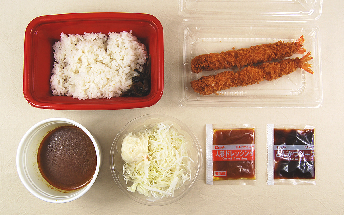 松のやのカレーメニューは昨年リニューアルし、香り豊かでマイルドな味に進化したそうです。なかでも同商品はインパクト抜群の大きな海老フライを2尾トッピングしているのが特徴。テイクアウトで購入するとカレーと海老フライが分けられているため、食べる前にご飯へ盛りつけてからいただきます。