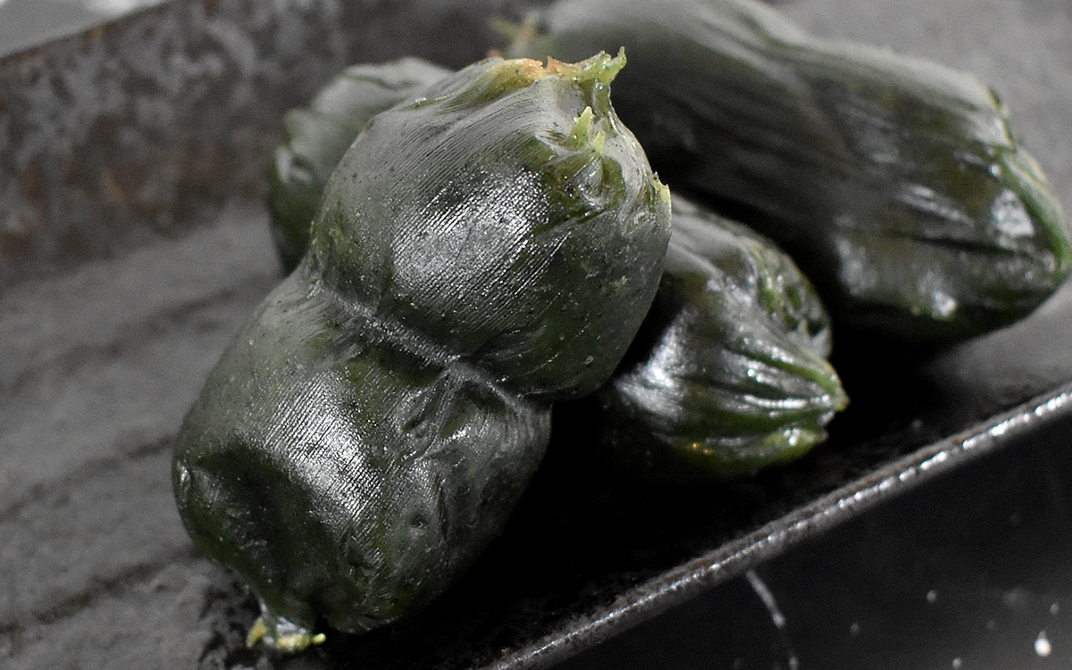 冷凍で届く同商品。自然解凍では食べられないため、必ず蒸し器で蒸すか電子レンジで温めてください。私は今回、電子レンジで温めて食べることに。笹をむかずにそのままレンジで温めると、ほんのり甘い香りが漂ってきます。